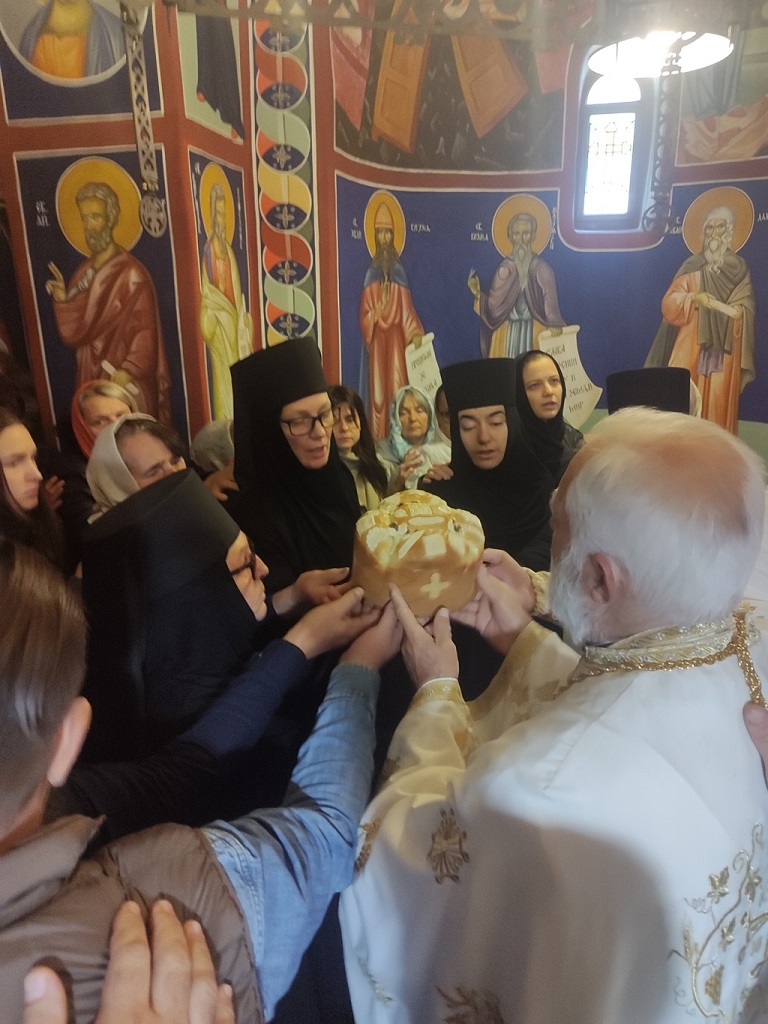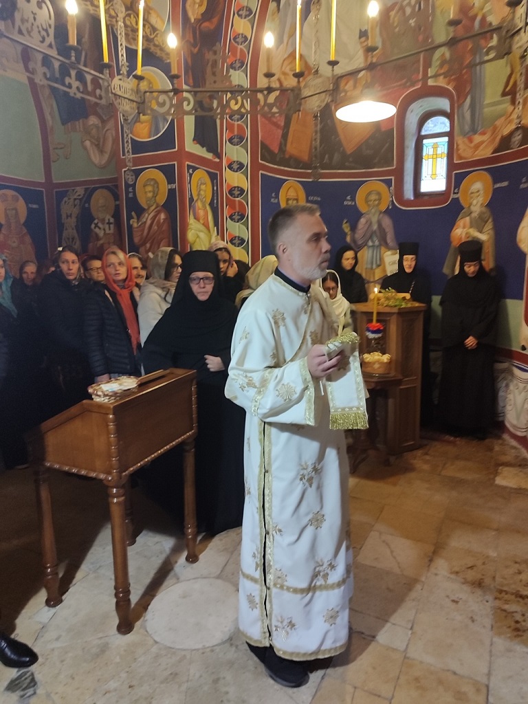 Након заамвоне молитве освећени су славски дарови и пресечен је славски колач. Сабрање је настављено славским ручком у манастирској трпезарији који су са великом љубављу и трудом припремиле настојатељница овог свештеног манастира мати Евгенија, монахиња Киријакија и верни народ овог краја.