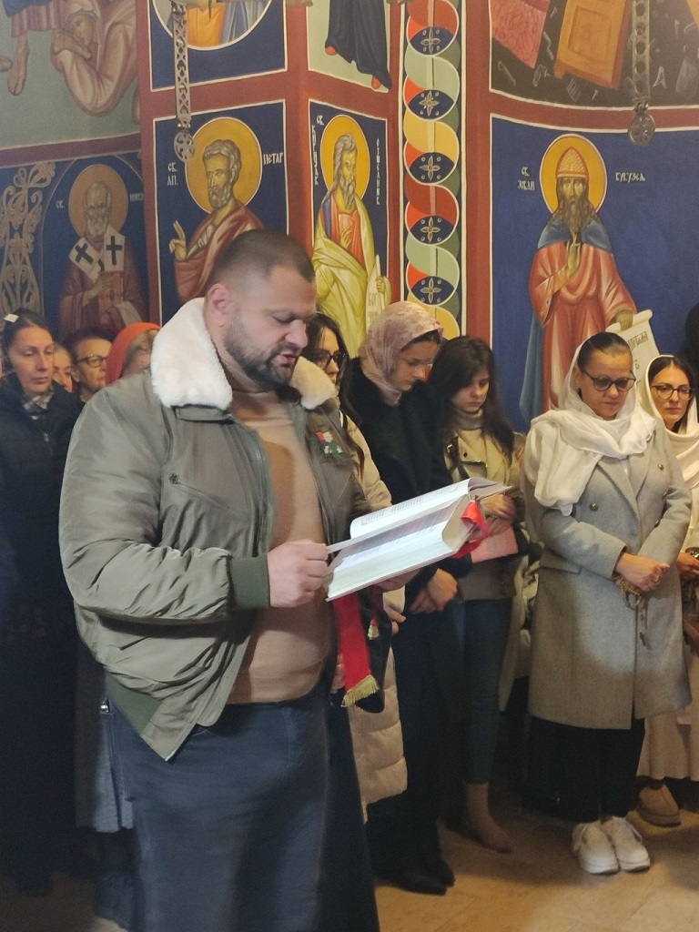 После прочитаног одломка из Светог Јеванђеља које описује богати риболов (Лука, 5, 1-11. Зач.17.) беседио је ђакон Стеван Илић. Он је истакао да је врло корисно за сваког хришћанина да схвати да без Бога не може ништа чинити, па макар се много трудио, као што су то чинили Симон, Јаков и Јован, и да при сусрету човека са истинитим Богом, човек треба да спозна своју грешност. Управо та спознаја грешности човека води покајању, покајење Христу, а Христос препорођају.