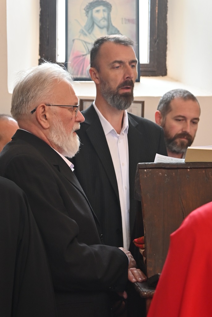 Архијереју Шумадијске епархије саслуживали су високопреподобни архимандрит Евтимије јошанички и протосинђел Пајсије шуљковачки, високопречасни протојереји Александар Гајић, арехијерејски намесник белички, и Милан Ђорђевић, пречасни јереји Срђан Дангузовић и инж. хаџи Жељко Јовановић из Бељаничког архијерејског намесништва, као и пречасни протођакон Иван Гашић и часни ђакон Далибор Нићифоровић.