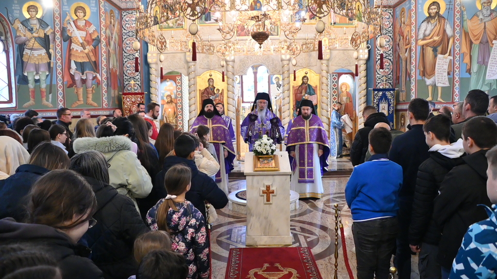 Браћо и сестре и драга децо Божија, ево Богу хвала, налазимо се на крају шесте седмице Васкршњег пост. За три дана ући ћемо у Страсну седмицу, ући ћемо у Страдалну седмицу поста, браћо и сестре, која по својој садржини, својом суштини, представља један још, како бих рекао, строжији начин хришћанског живота. И не само хришћанског живота, него и строжији начин, браћо и сестре, и поста, и молитве. Јер цела ова Страсна или Страдална, како хоћете, седмица, која је испред нас, као што рекох, она нам говори, зашто је Господ дошао у овај свет, зашто је Господ страдао, зашто је прикован на крст, зашто је пљуван, зашто је руган, зашто је називан ђаволом. Све нам то говори, браћо и сестре, да треба да се што више удубимо у богослужење ове Страдалне седмице, да би, кроз веру и духовни осећај, сами преживљавали оно, све што је Господ учинио ради нас и ради нашег спасења. И ако будемо тако проводили ове дане поста и поготово ове наредне седмице, онда ћемо осетити радост празника Васкрсења Христова.