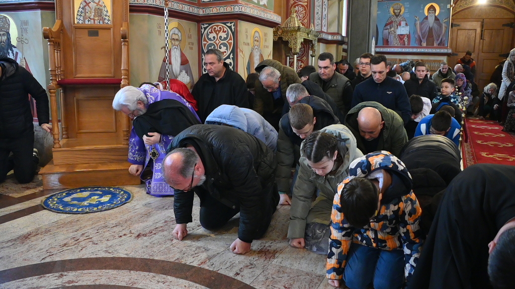 Прихватити Бога, служити Богу, али служити и ближњем. Служити у смирењу, а не у гордости. И зато, ако ми постимо, ако нам је пост у гордости, онда никакве користи од поста немамо. Онда постимо да би се хвалили. Онда постимо да би могли да кажемо ономе који не пости – Е, видиш, ја сам бољи, јер постим, а ти не постиш. Ако тако кажеш, немаш никакве користи од поста, браћо и сестре. Јер ти онда и не знаш шта је суштина поста. Онда ти схваташ да је пост циљ. А пост није циљ. Пост је средство да дођемо до циља. Ког циља? Царства Небескога. Да дођемо до Бога, браћо и сестре. А кад дођемо до Бога, онда ћемо лако доћи и до ближњега свога. Или, боље речено, онда ћемо га у смирењу и то ближњега другачије разумети. Разумећемо га боље. Разумећемо га онако, браћо и сестре, као што желимо да нас други разумеју. Зато треба увек, браћо и сестре, да пођемо од себе. Да пођемо од себе, да погледамо себе. И после је тај који нас управо уводи да уђемо у себе. То јесте да видимо себе, да сагледамо себе. Јер ако не сагледамо себе онако и како и заиста јесмо, и ако не признамо себи себе, онда, браћо и сестре, ми ћемо само осуђивати другога. Јер чим не видим себе, ја не видим ни своје грехове, не видим ни своје падове. А кад видим свој грех, видим свој пад, па чекај, онда ћу се замислити и показати, па чекај, овај други човек сто пута је бољи од мене, а ја мислио да сам најбољи.