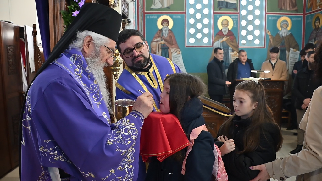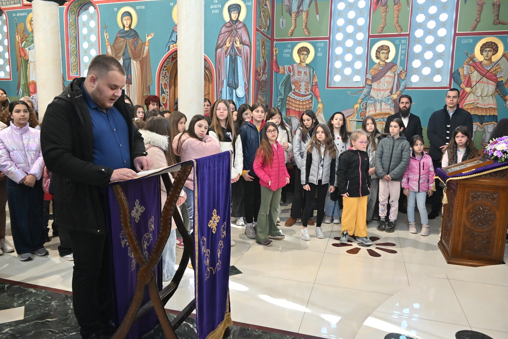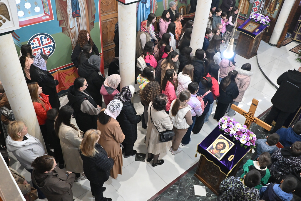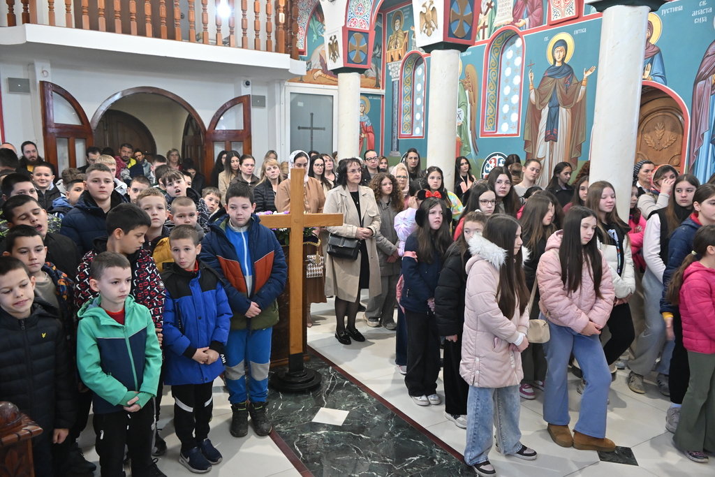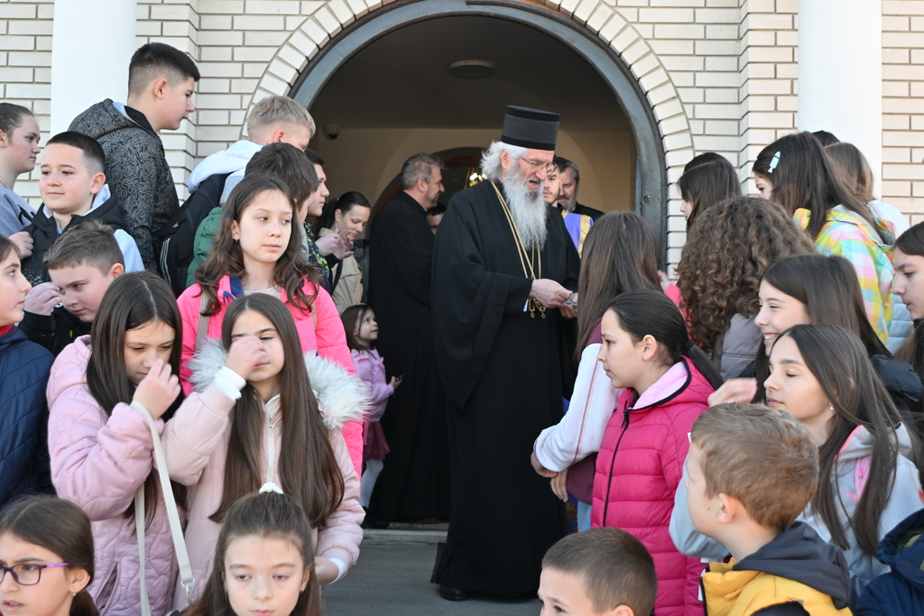 По завршетку Свете литургије, Високопреосвећени митрополит је благословио верни народ као и децу са веронауке са њиховом вероучитељицом Иреном, поделивши им иконице.