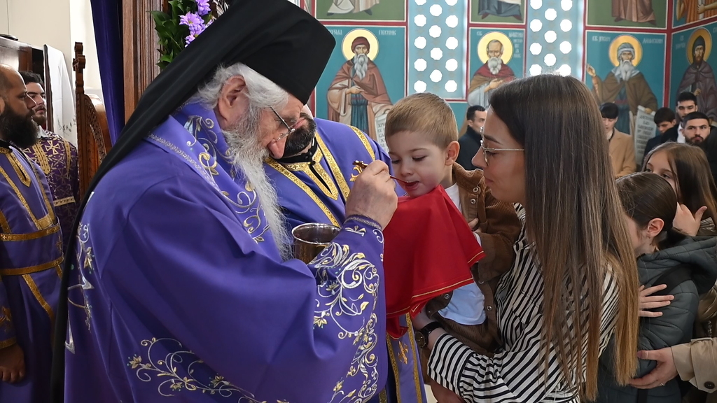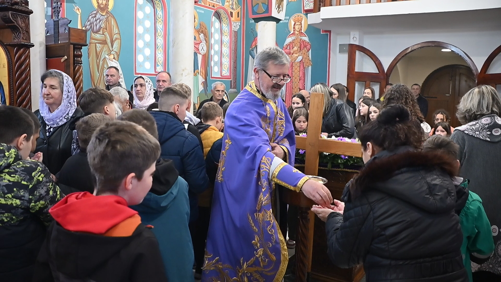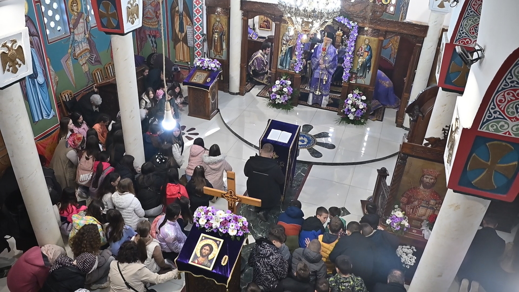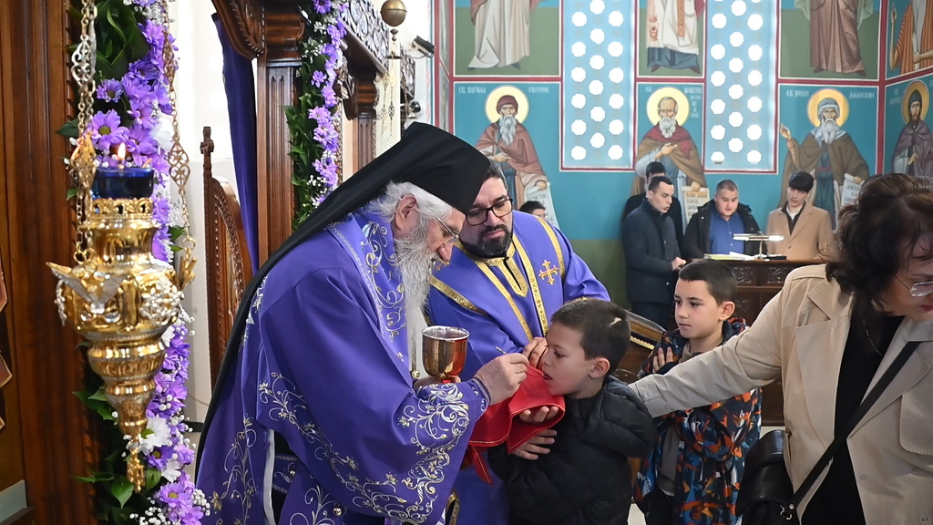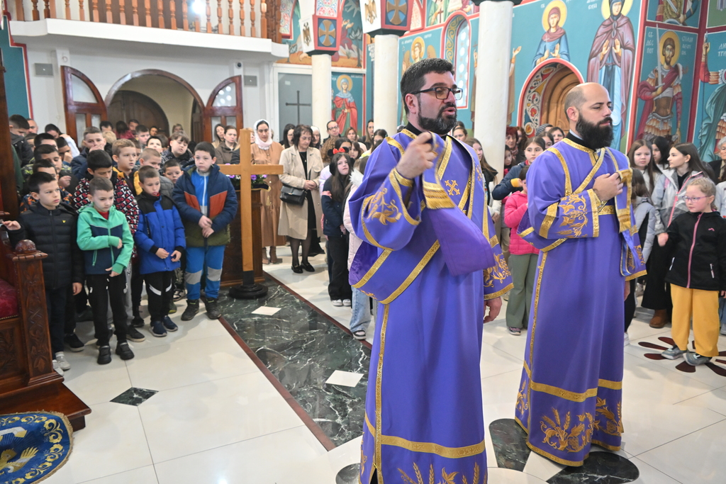 По завршетку Свете литургије, Високопреосвећени митрополит је благословио верни народ као и децу са веронауке са њиховом вероучитељицом Иреном, поделивши им иконице.