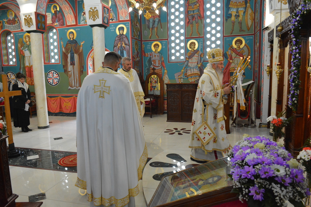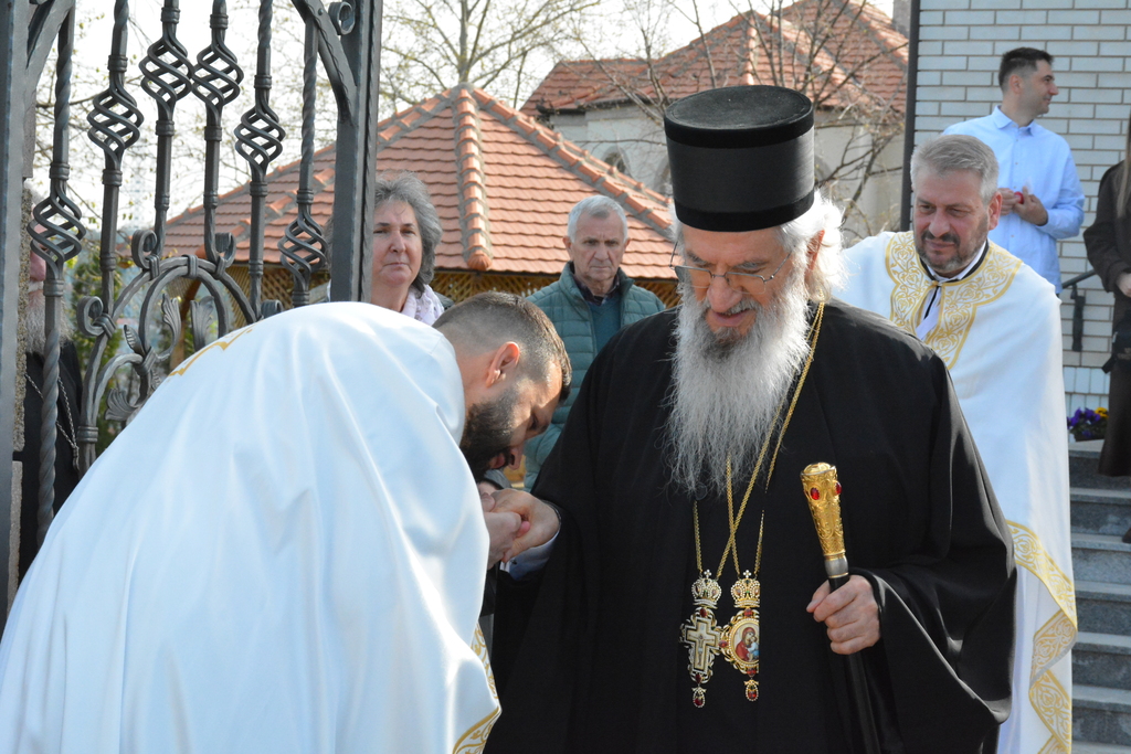 По завршетку Свете литургије, Високопреосвећени митрополит је благословио верни народ, поделивши им иконице и васкршња јаја.