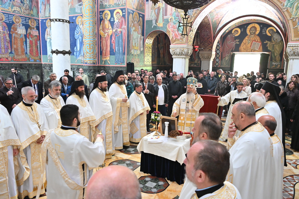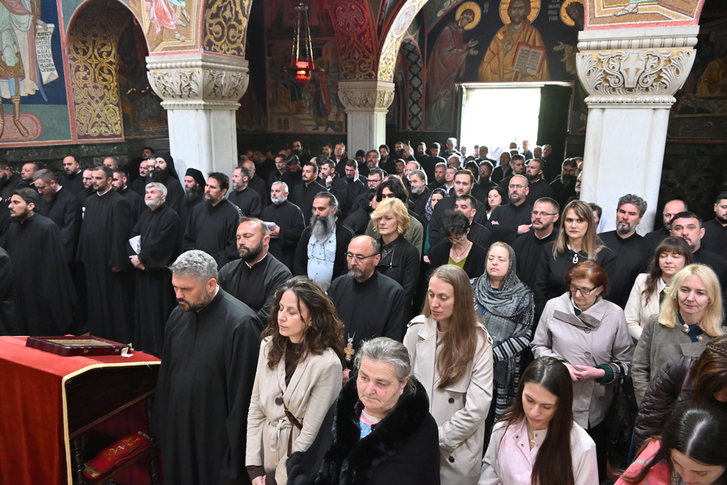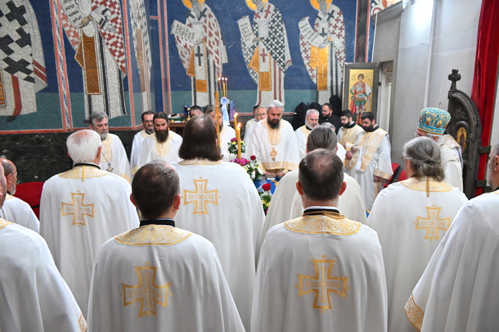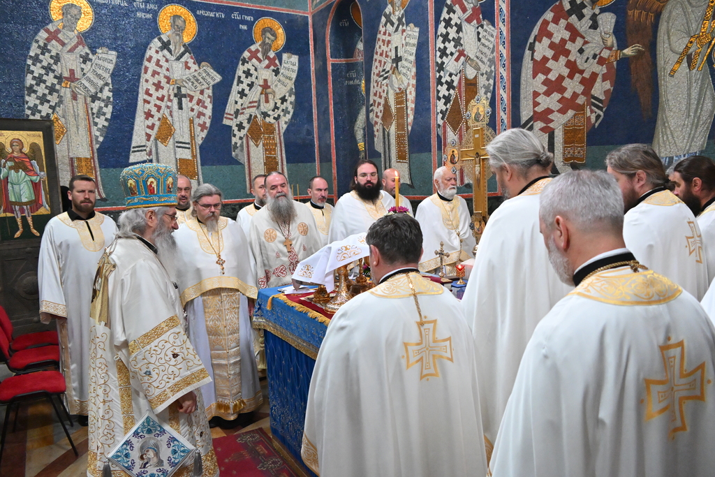 Митрополиту су саслуживали свештеници и свештономонаси епархије шумадијске.