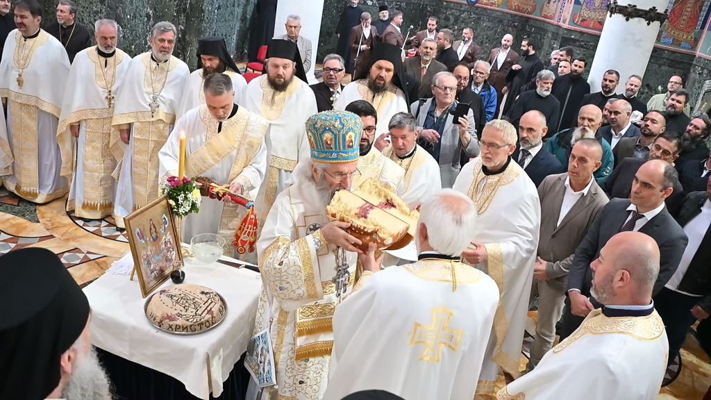 Зато, браћо и сестре, ми данас, сабрани на Светој Литургији, духовно се пренесимо ка том извору и замолимо Пресвету Богородицу да нам подари здравље и духовну снагу, да можемо пребродити искушења која нас сналазе. Али треба да се запитамо да ли нас искушења сналазе и због слабости наше вере. Када спомињемо Пресвету Богородицу, треба да схватимо да је она радост за све верне, за оне који верују у Сина њенога и у Бога. Она, која је најближа Христу Спаситељу, брине се о својој верној деци. Она је Мајка Божија, али и Мајка наша. А мајка се брине о својој деци, и деца треба да се брину о својој мајци. Најтоплије је крило мајчино, а крило Мајке Божије шире је од неба и земље. Зато у храмовима видимо Пресвету Богородицу са натписом „Шира од небеса“. Она је у себе примила Онога кога не може да обухвати васељена. Сместила је у себе несместивога Бога кроз смирење и љубав. И то смирење ју је учинило Богородицом. Зато је ми вековима називамо преблагословеном и пречистом Мајком Божијом. Коме Пресвета Богородица подари свој благослов, тај, ако је грешан, оправдаће се, ако је слаб, оснажиће се, ако је пао, устаће. Ко је жалостан, обрадоваће се. Јер ко може да обрадује више од мајке. Али када деца не узвраћају љубав, знају да нанесу бол. Ипак, љубав мајке је већа од сваког бола. Зато треба да схватимо ако смо својом нељубављу повредили своју мајку, а нарочито Мајку Божију, треба да се покајемо. Благо ономе ко прими благослов Пресвете Богородице. Она и данас служи Цркви и притиче у помоћ вернима који јој се моле. Када се нађемо у невољи, прво призивамо мајку, јер је мајка светиња. Зато призовимо Пресвету Богородицу и потражимо њен благослов. Много је благослова у Мајци Божијој, само треба да осетимо њено присуство. Она нам помаже на разне начине, кроз чудотворне иконе и свете изворе. Иако смо пали и упрљани, постоје духовни извори да се очистимо. Јер сви смо грешни, али имамо Мајку Божију и њену љубав. Зато јој приђимо и замолимо је. Када се молимо, кажемо: Господе, спаси нас, али се обраћамо и Пресветој Богородици: Пресвета Богородице, спаси нас. За те речи није потребна наука, већ чисто срце испуњено вером, љубављу и надом.