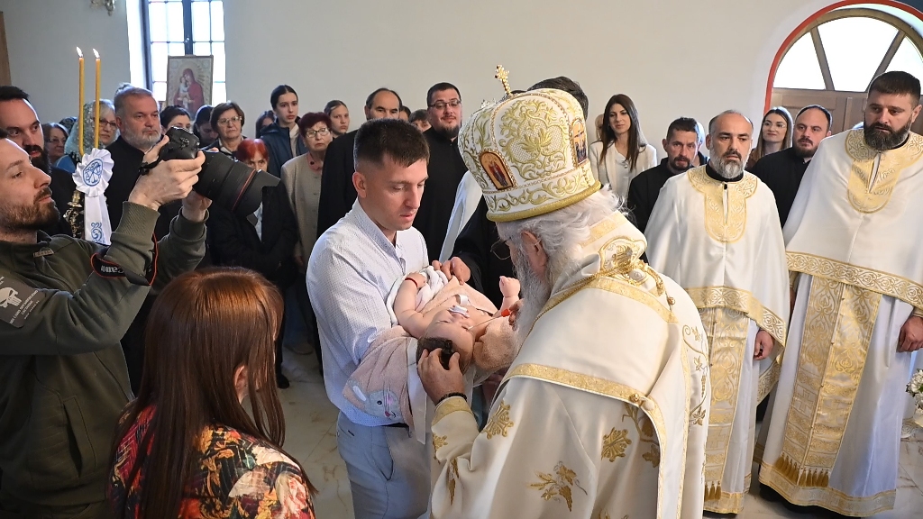Ви сте видели, ми смо данас Марту крстили у току Свете Литургије. То је стари, древни обичај хришћански. Да све увире и све треба да извире из Литургије. И данас, у ствари, поред све то што је она примила дарове Духа Светога и што се одрекла, сатане, данас печат њеног крштења је управо причешће. И зато вас молим, настојте да своје крштавате у оквиру Литургије. Дуго и дуго времена је било па се у току Литургије и крштавало, и венчавало, и опевавало, браћо и сестре. Јер Литургија, она повезује браћо и сестре и прошлост, прошло време и садашње време и претвара га у вечност. А ево, ми данас служимо Литургију. И овај ће свет да постоји све док се у овоме свету врши Света Литургија.