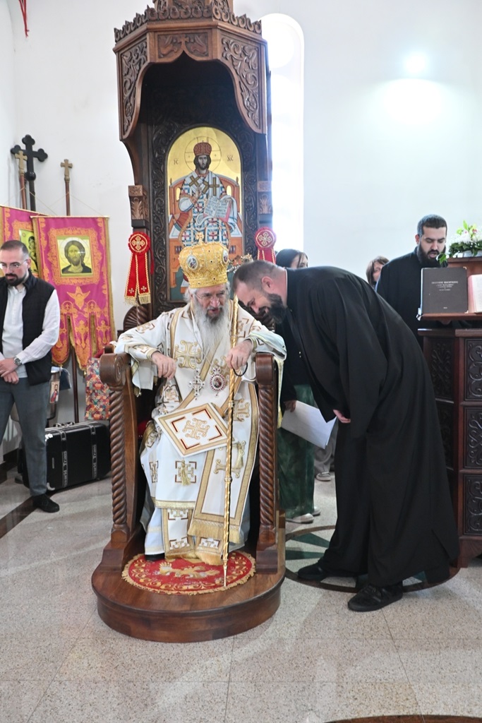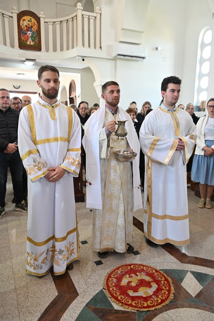 Архијереју су саслуживали протојереј ставрофор др Зоран Крстић, протојереј ставрофор Душан Илић, протојереј Дејан Марковић, протојереј Срећко Зечевић, протонамесник Ненад Милојевић, јереј Милош Коцић, протођакон Мирослав Василијевић, протођакон Иван Гашић и ђакон Стефан Јанковић.
