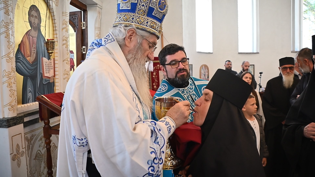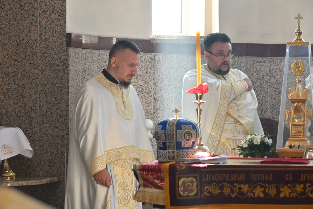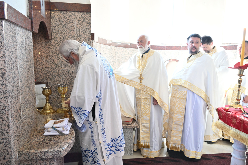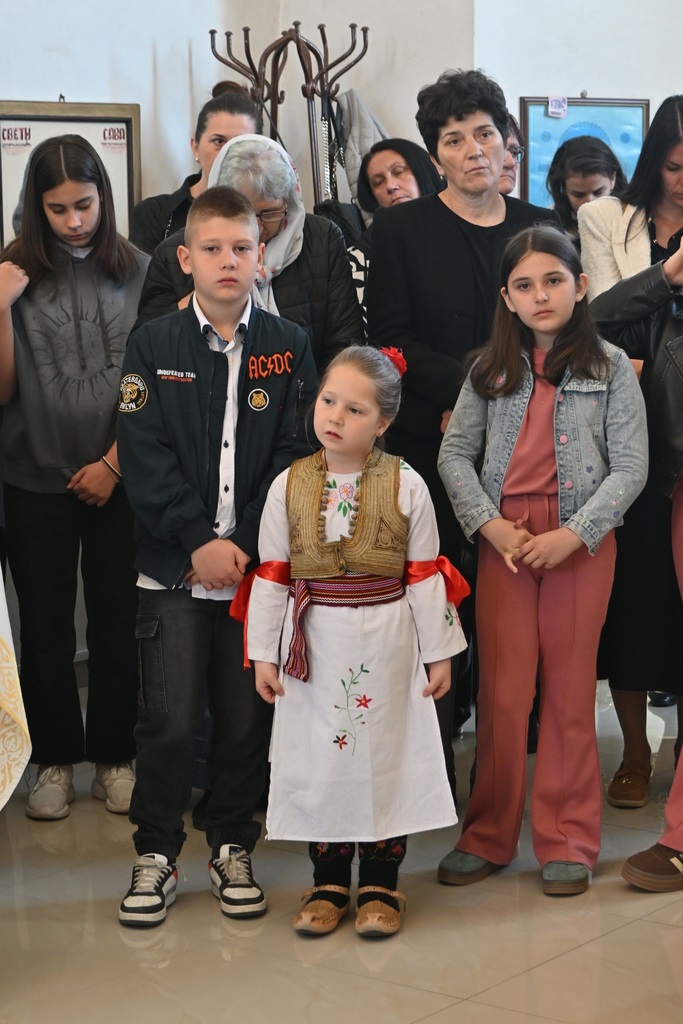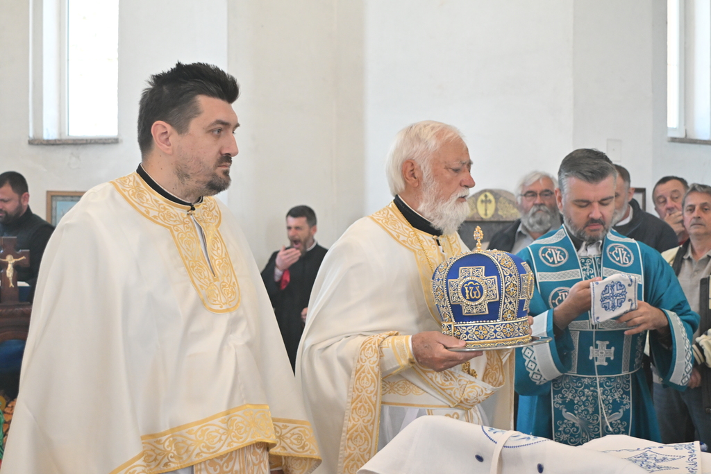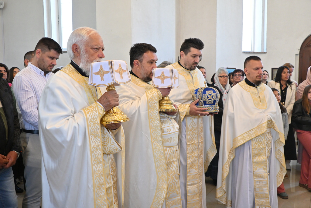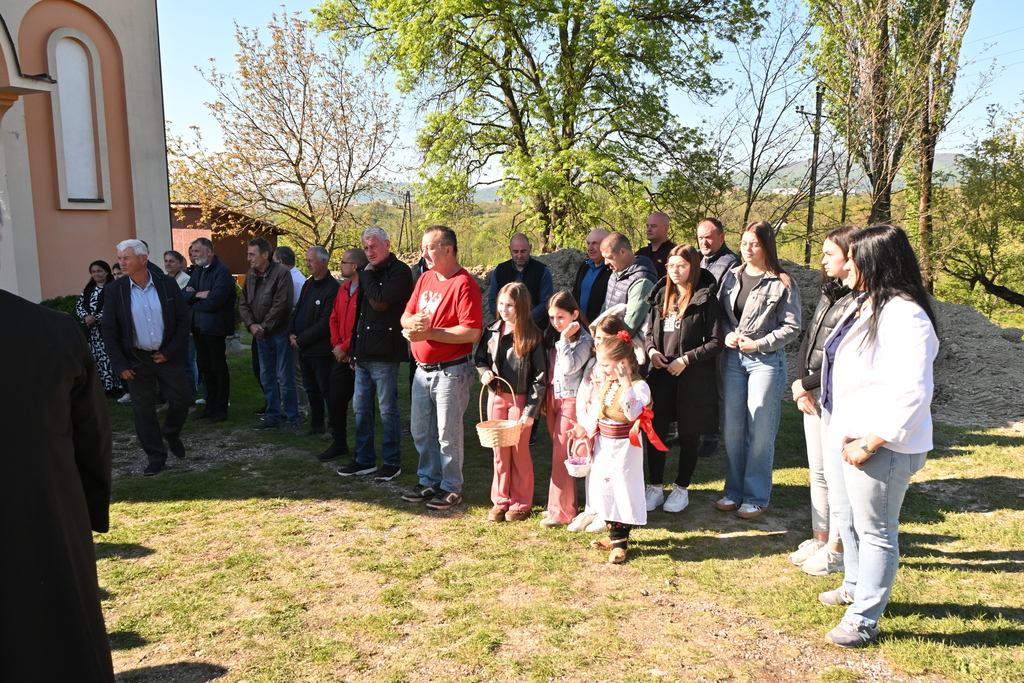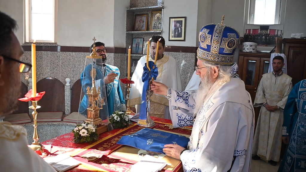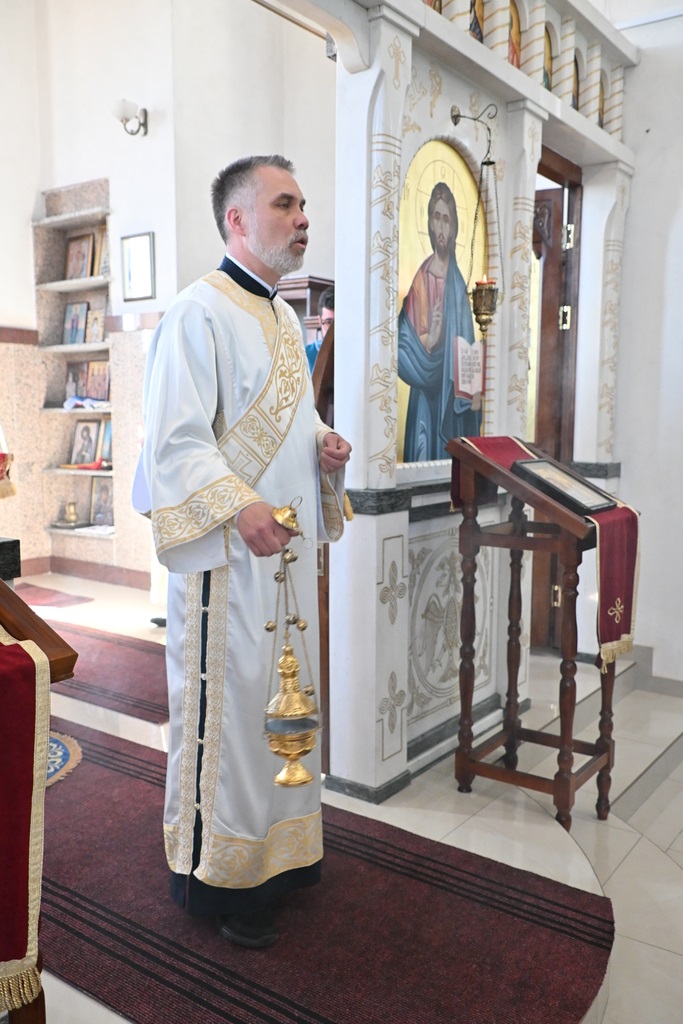Сабрани народ овог дивног шумадијског села причестио се Светим Тајнама Христовим. На самом крају Свете Литургије, владика је осветио славске дарове и пресекао славски колач, пожелевши свим парохијанима овога места срећну храмовну славу.