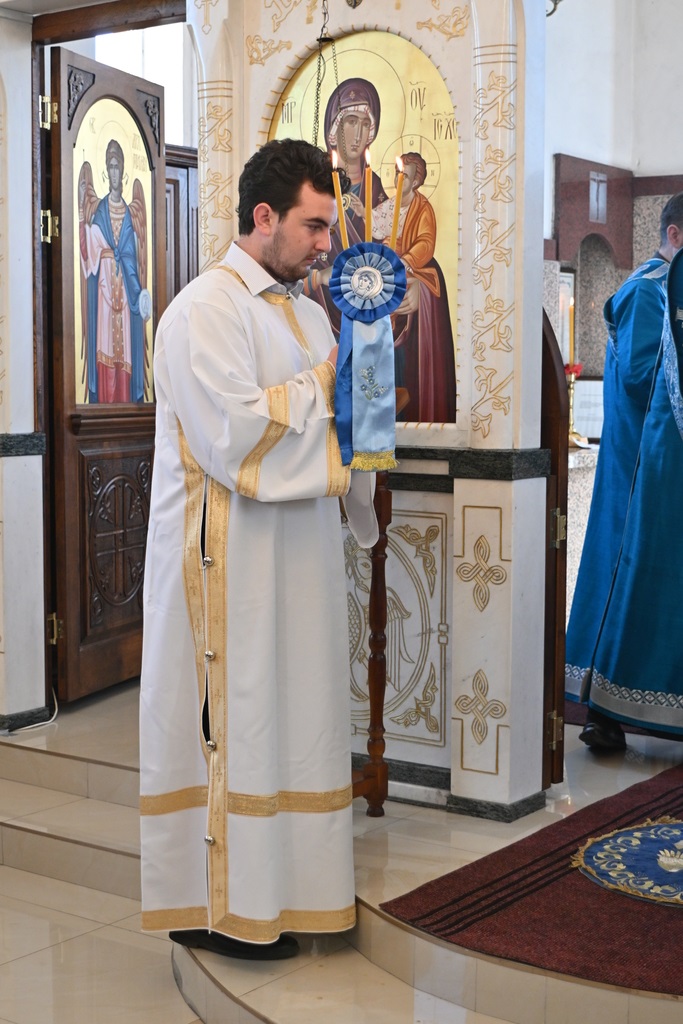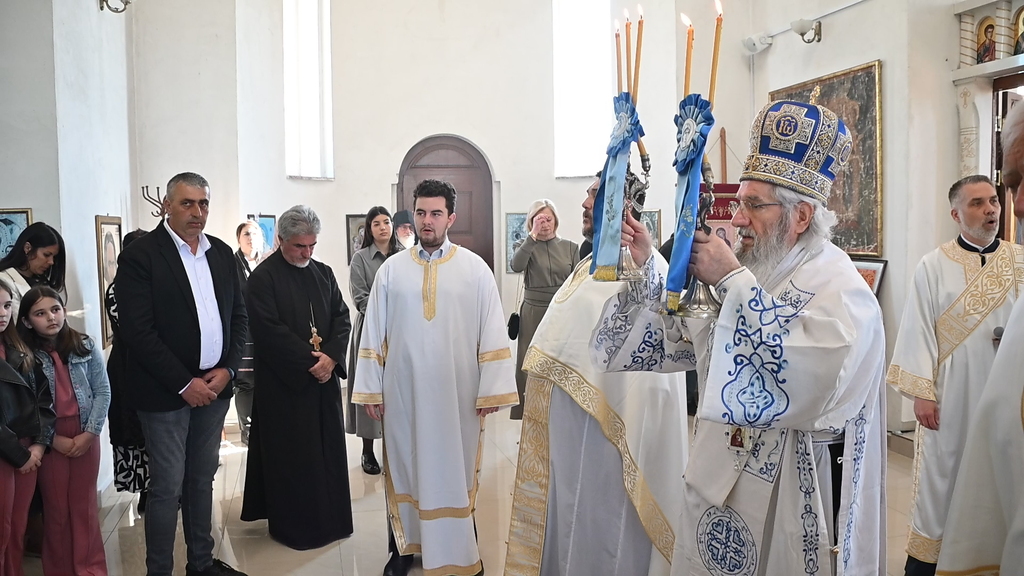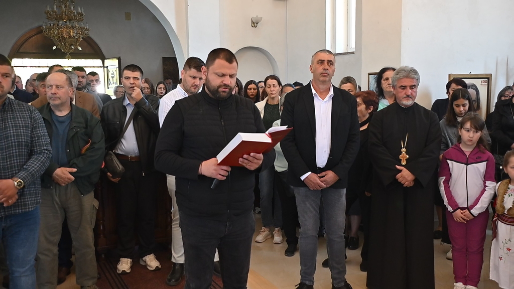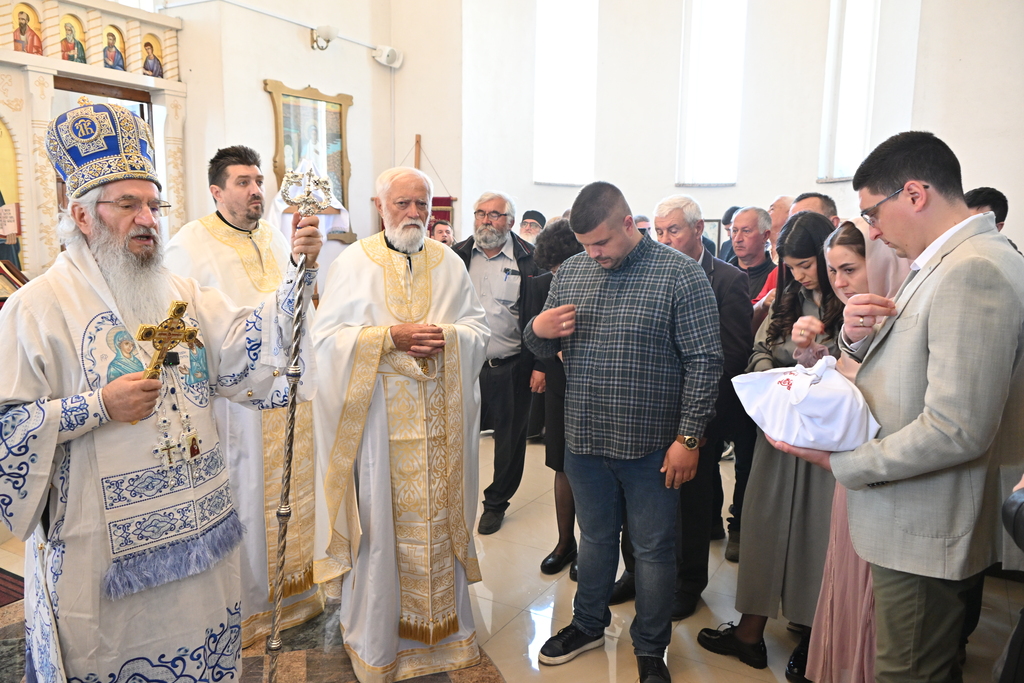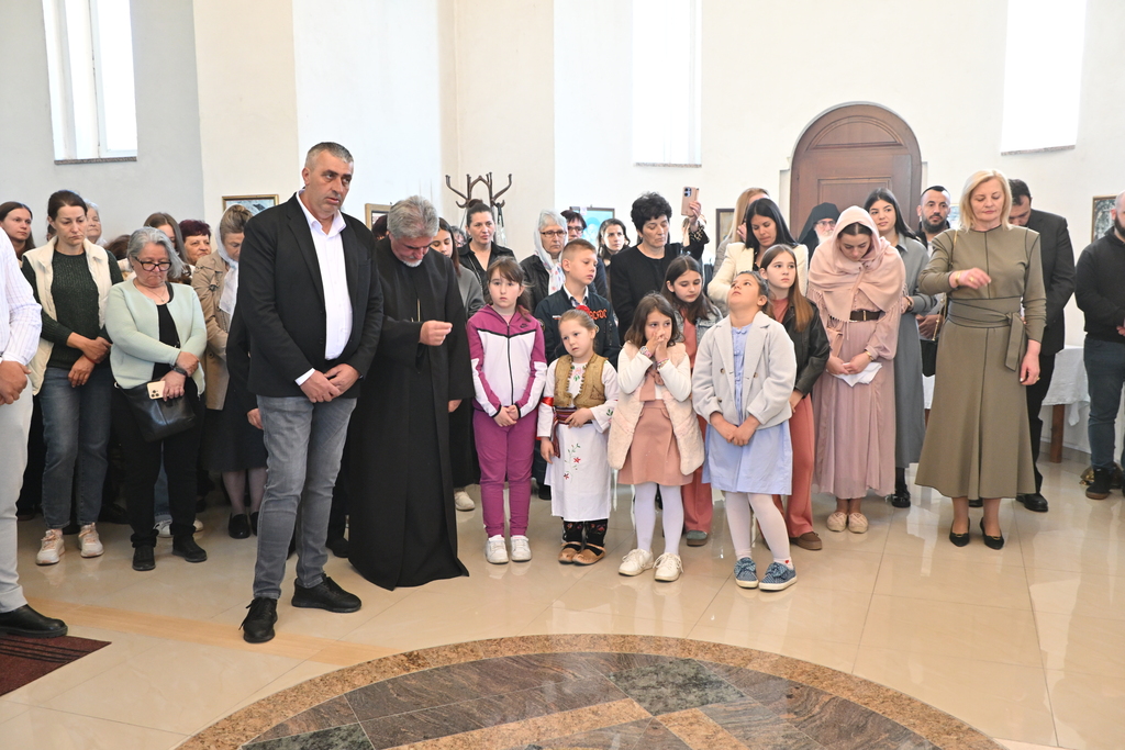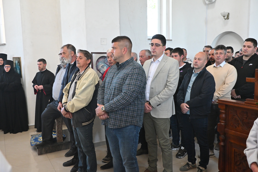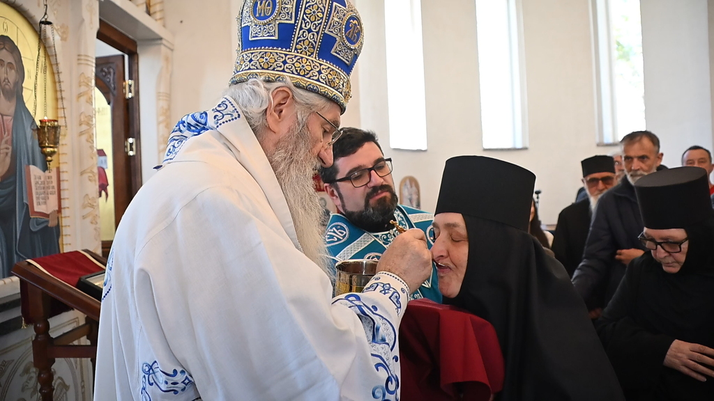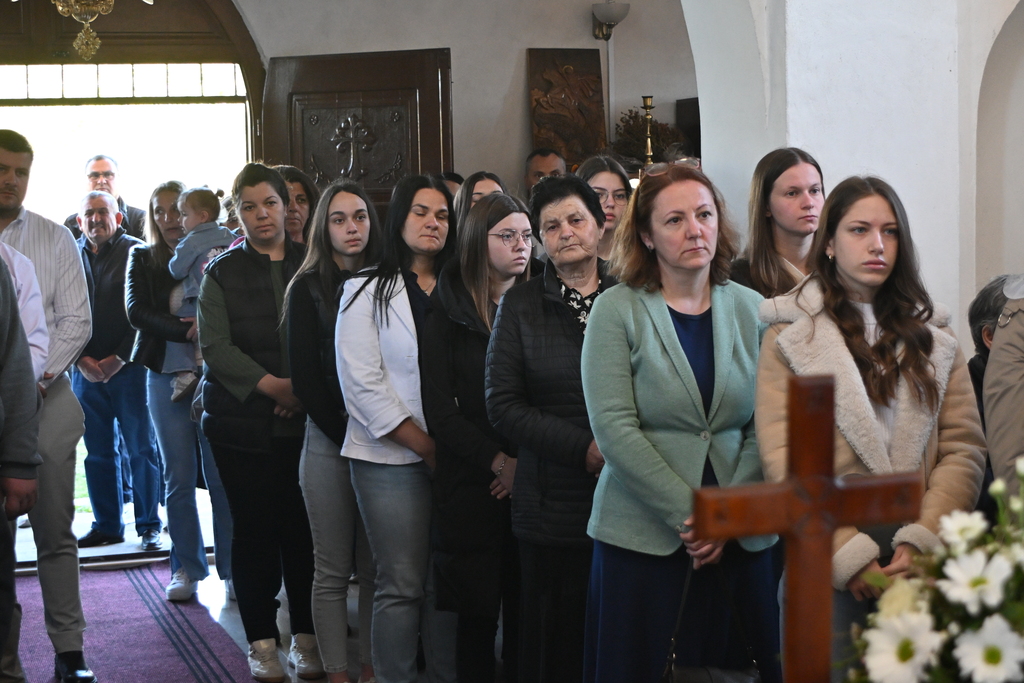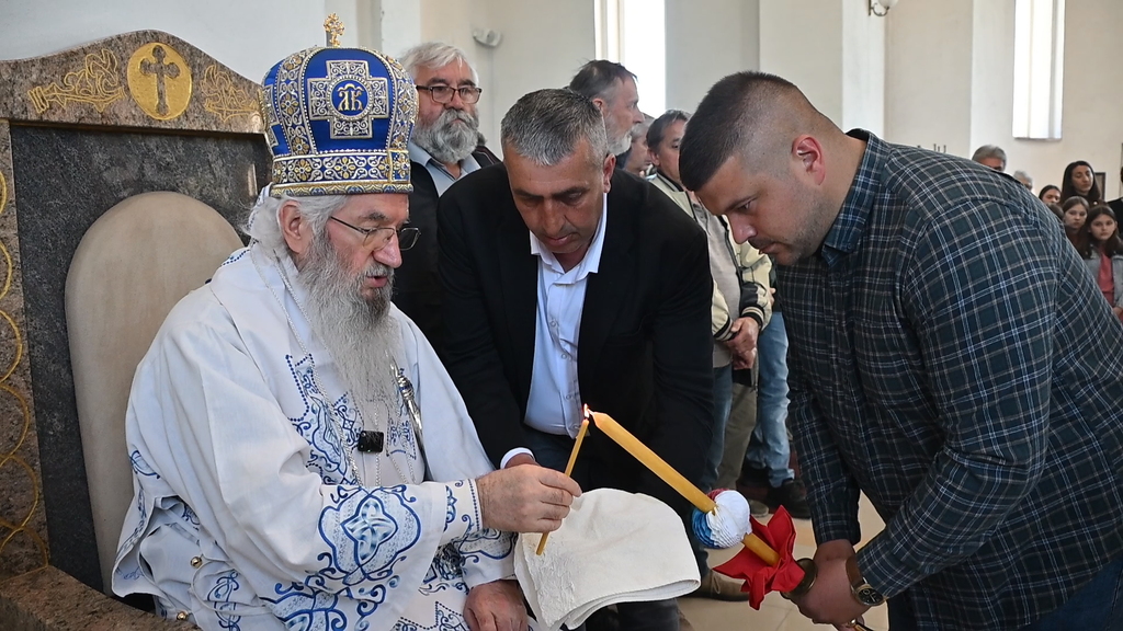 Сабрани народ овог дивног шумадијског села причестио се Светим Тајнама Христовим. На самом крају Свете Литургије, владика је осветио славске дарове и пресекао славски колач, пожелевши свим парохијанима овога места срећну храмовну славу.
