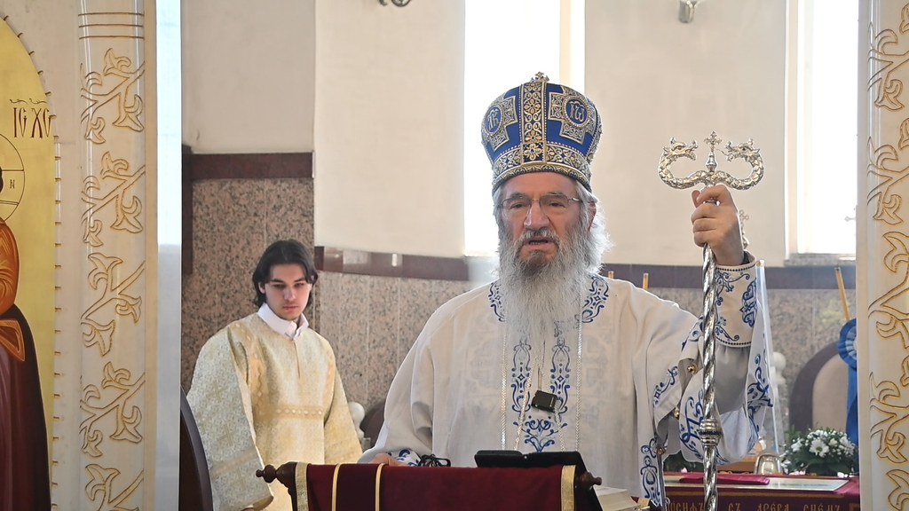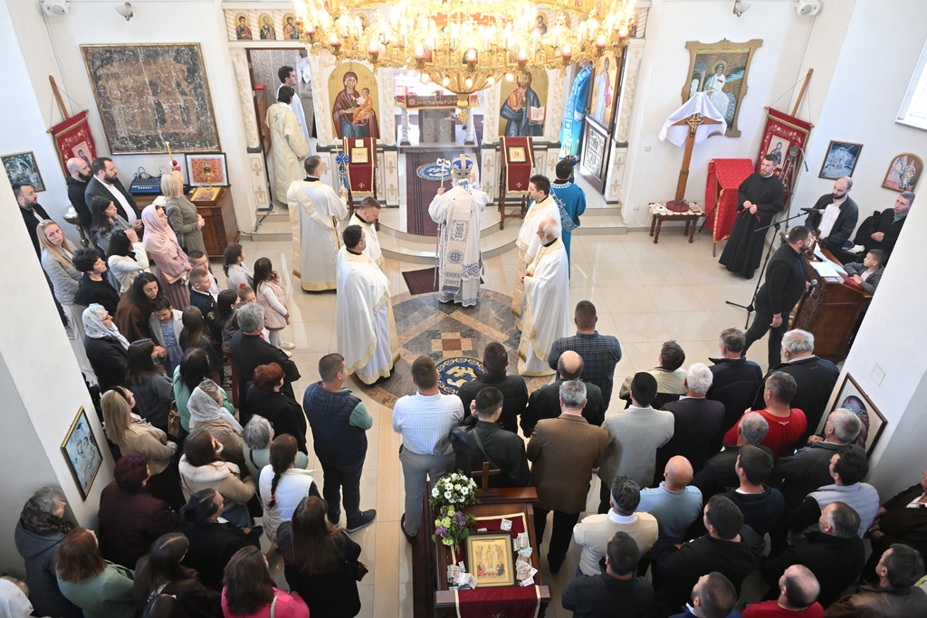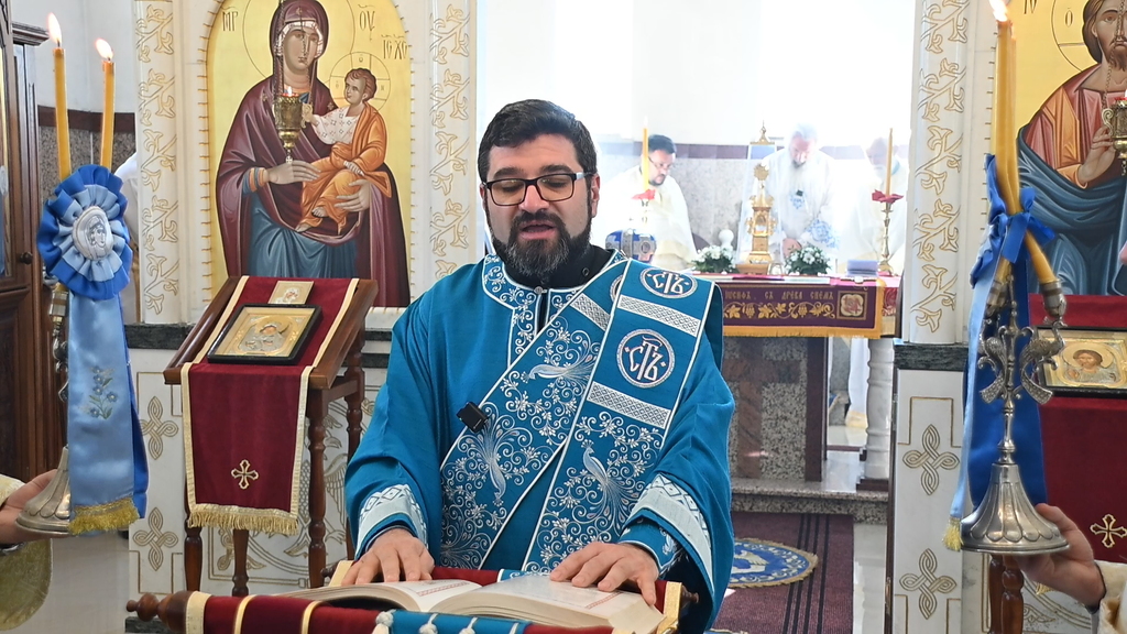 „У име Оца и Сина и Светога Духа. Христос васкрсе, браћо и сестре! Срећан празник светих жена мироносица, срећна слава овоме храму који је њима посвећен, а нека је срећно и благословено и наше сабрање данас овде у овоме храму, где смо се Духом Светим сабрали да се Богу молимо, да служимо Божанствену Литургију, да предокушамо Царство Небеско, јер Литургија и није ништа друго, браћо и сестре, него Царство Небеско. Зато сваки долазак свакога од нас на Литургију јесте у ствари улазак у Царство Небеско.