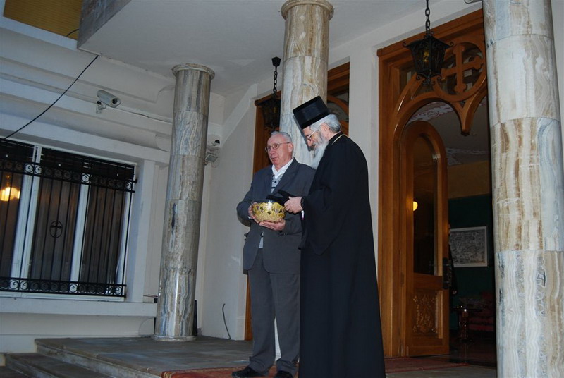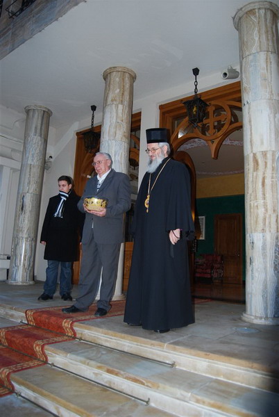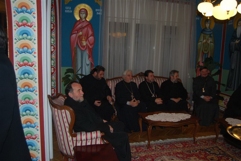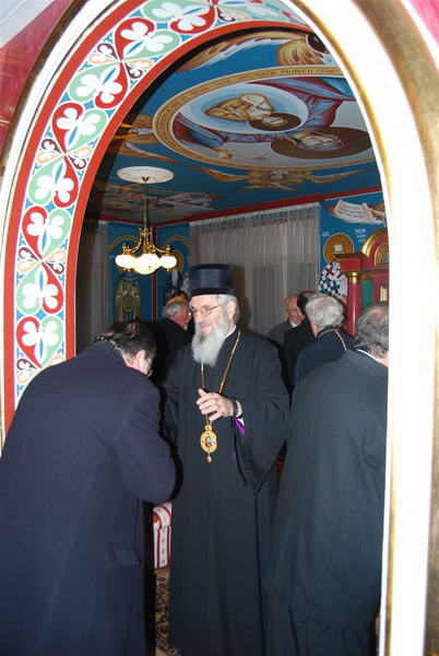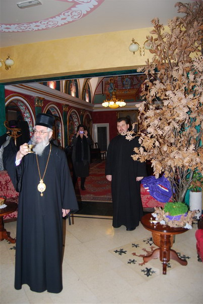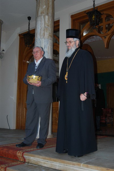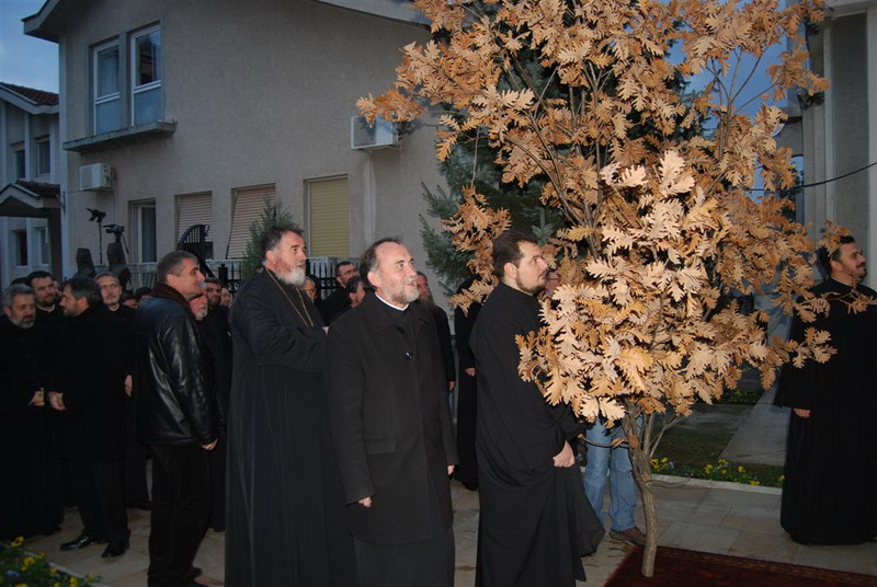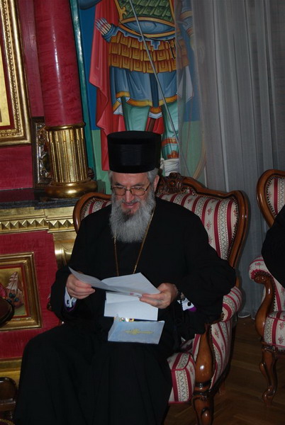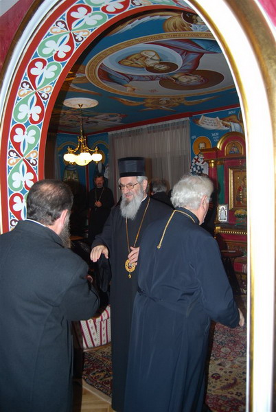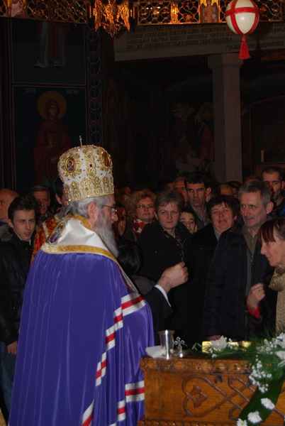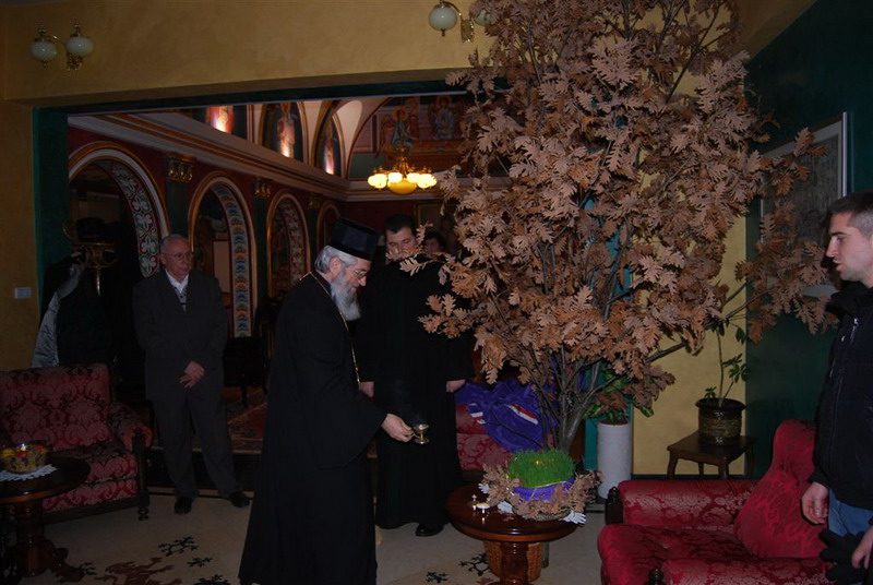 Поздравно слово испред Владичанског дома, одржао је парох грошнички отац Душан Илић. Није то била обична беседа које се спрема за неке важне догађаје, са намером да се одушеви слушалачка публика. Оно што је изговорио отац Душан, била је беседа срца, беседа душе, беседа у којој смо чули толико топлих и искрених речи упућених нашем Епископу, које погађају најтананије нити људског бића. У том тренутку довољни су били само погледи да одсликају лица свештеника окупљених око свога Пастира.