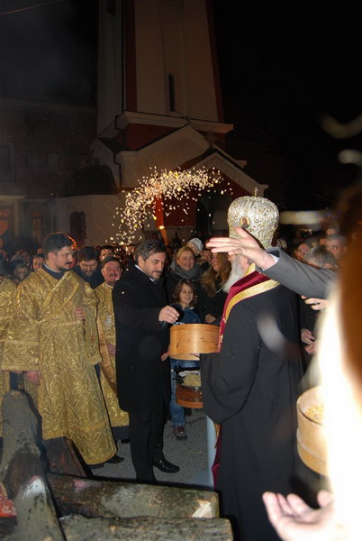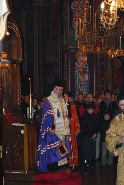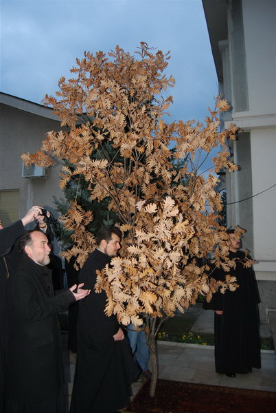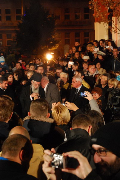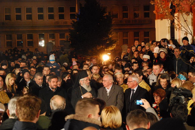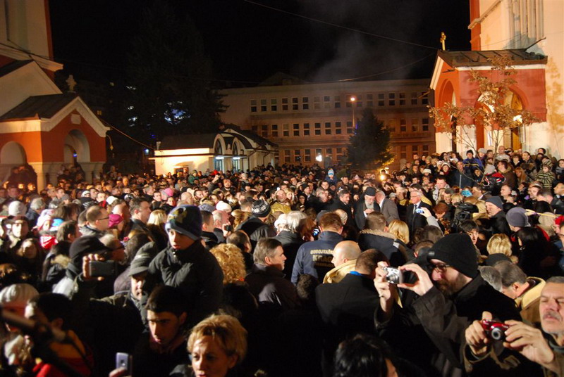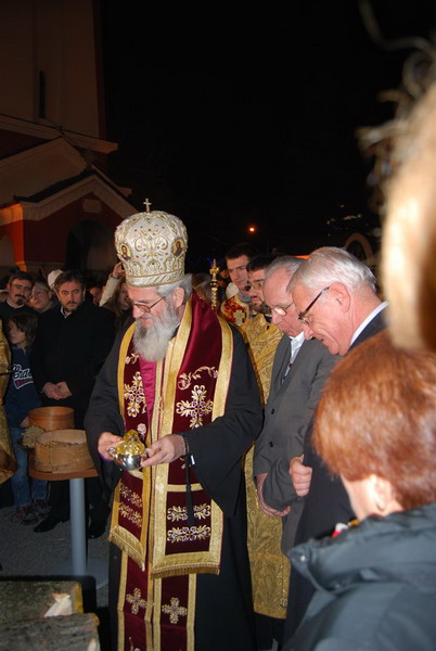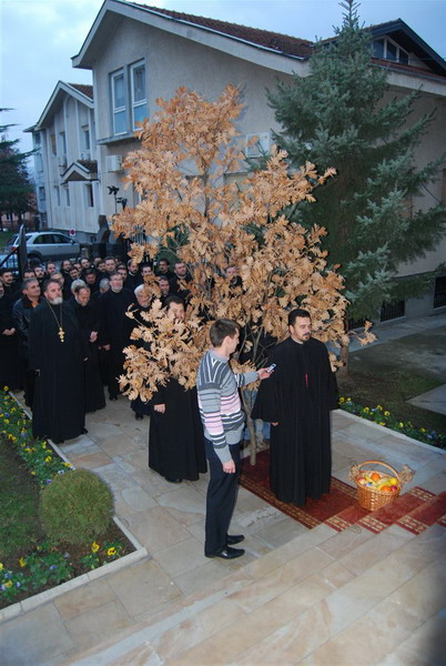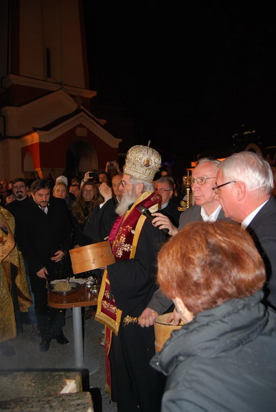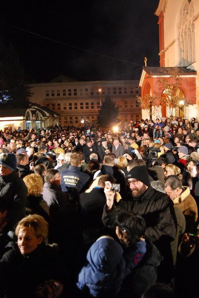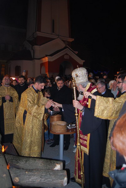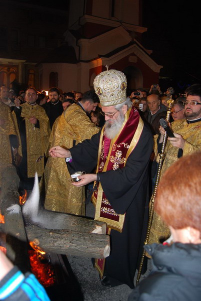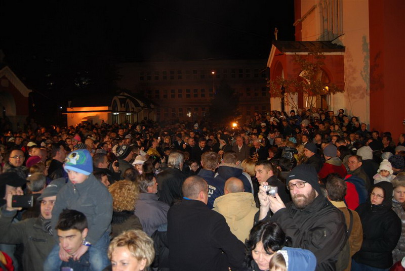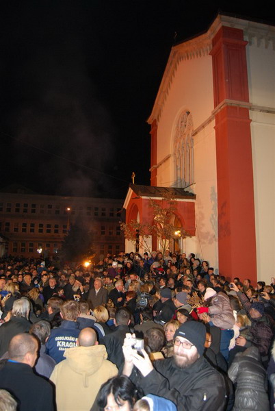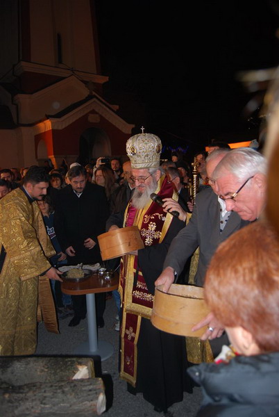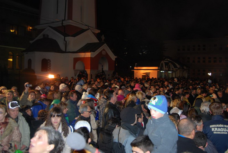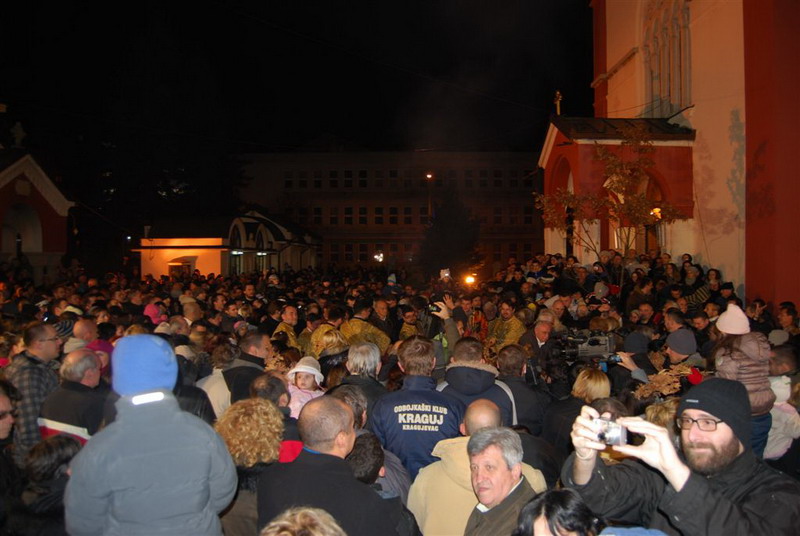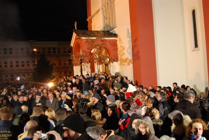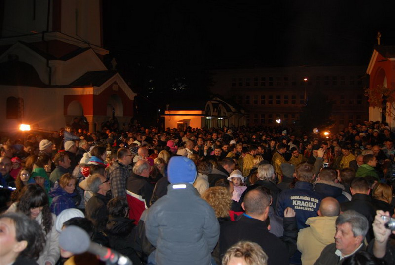 У предвечерје рођења Сина Божијег, у Саборном храму Успења Пресвете Богородице, Његово Преосвештенство Епископ Шумадијски Јован са свештенством саборног храма служио је бденије, уз присуство мноштва верника. Бденије које је служено састоји се из Великог повечерја и јутрења са првим часом. На великом повечерју свечано се пева песма пророка Исаије: С нама је Бог, разумејте, народи, и покорите се, чујте до крајева земље и ојачавши покорите се ... После бденија Владика Јован, Градоначелник Крагујевца Верољуб Стевановић, председник Скупштине града Крагујевца Саша Миленић, председник Епархијског Савета, председник Црквене општине крагујевачке Мирослав Брковић, испред Саборног храма принели су бадњак на ватру, Владика Јован је премазао бадњак медом и залио вином и уз песму Дечијег хора Саборног храма, свима пожелео срећно Бадње вече, речима: Мир Божији – Христос се роди! Јер сви ми окупљени око бадњака као једна духовна породица, треба да будемо окупљени око Христа Богомладенца у миру, слози и љубави.