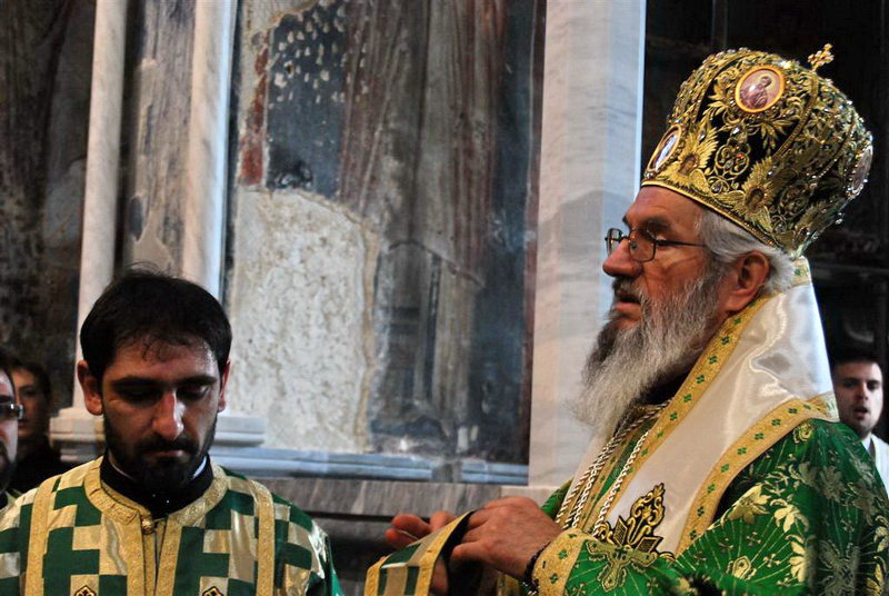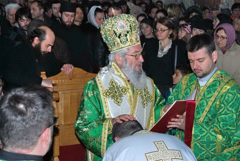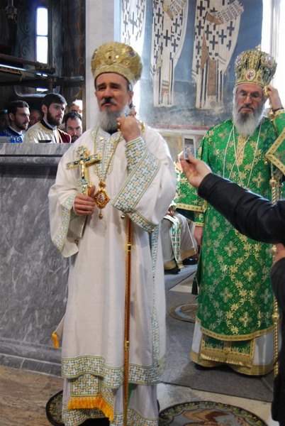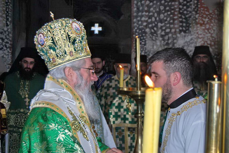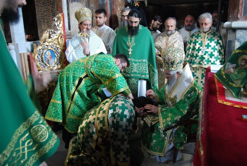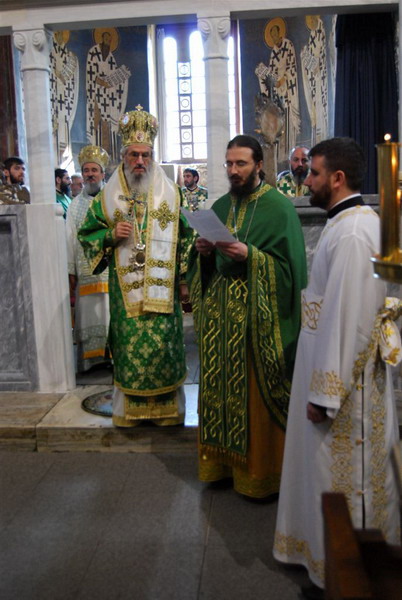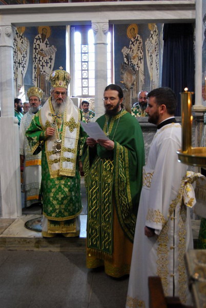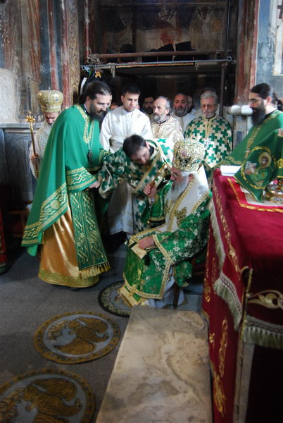 Међутим, бдење је било само увод у величање Светог Симеона чија је круна прославе управо на Светој Литургији, коју су служила два епископа – Његово Преосвештенство Епископ шумадијски и администратор Епархије жичке Господин Јован и Његово Преосвештенство Епископ бихаћко-петровачки Господин Атанасије, уз саслужење бројних свештеника и ђакона. Након прочитаног Јеванђеља Владика Јован је поздравио гостујућег Владику и уступио му реч. Владика Атанасије је све присутне подсетио на прочитане речи Светог апостола Павла – које су то врлине које красе истинског хришћанина, а надовезујући се на речи данашњег Јеванђеља „Ко хоће за мном да иде нека се одрекне себе и узме крст свој, и за мном иде“, нагласио је да је то потребан услов да би се човек звао хришћанином и започео живот у Духу. Током Свете Литургије Владика Јован је у чин свештеника рукоположио ђакона Милорада Вујовића из Лучана, а у чин ђакона службеника Епархије жичке, дипломираног теолога Мирољуба Попадића из Краљева. Након рукоположења Владика их је родитељски поучио о значају одржања у благодати коју су рукоположењем добили на дар и о потреби одговорног и молитвеног живота. Због мноштва народа изнета су три путира ради причешћа верних. После заамвоне молитве, поред гробног места Светог Симеона Мироточивог, пререзан је славски колач. Након завршетка Свете Литургије, у трпезарији Светог Саве, Архимандрит Тихон са својим братством организовао је трпезу љубави и угостио све присутне.