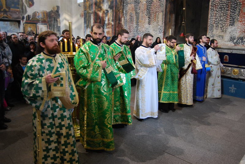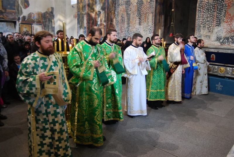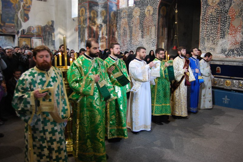 Истински поштоваоци манастира Студенице и њене светиње окупили су се у ноћи уочи литургијске прославе Светог Симеона Мироточивог да заблагодаре Богу и посвећеном родоначелнику немањићке династије. Надахнута служба, у прелепом и испуњеном храму, употпуњена византијским појањем хора „Мојсије Петровић“ из Београда, могла је на лак начин да нас приближи оном осећају који су имали изасланици руског кнеза Владимира када су се пре много година нашли на сличном месту не знајући да ли су на небу или на земљи.