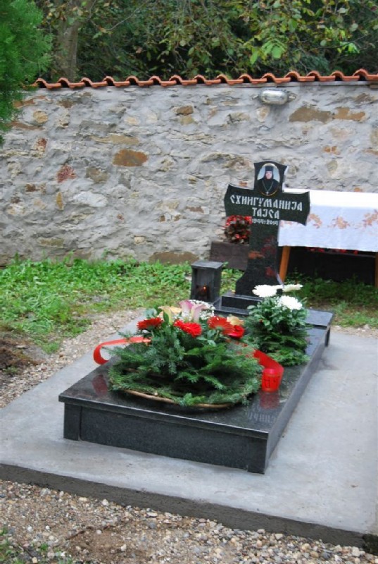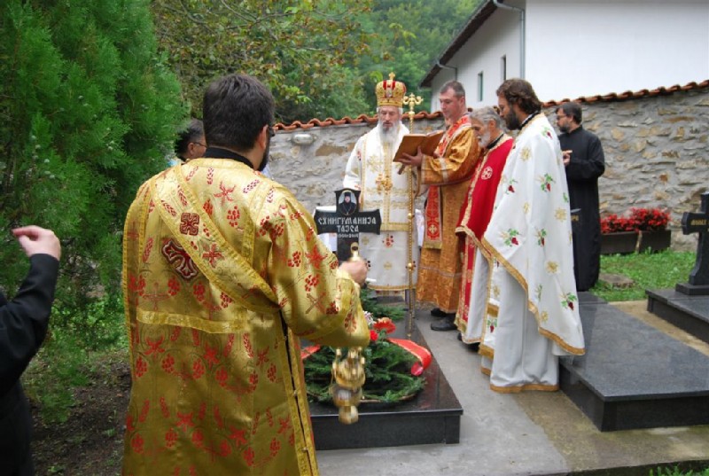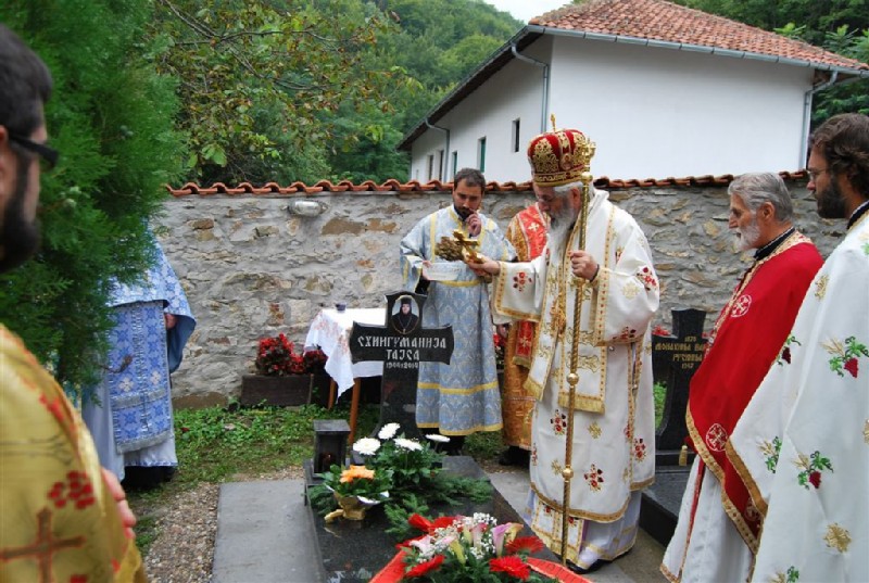 На крају Литургије Епископ је служио полугодишњи парастос монахињи Тајси, игуманији манастира Вољавче, да би у порти манастира освештао надгробни крст и служио кратак помен.
