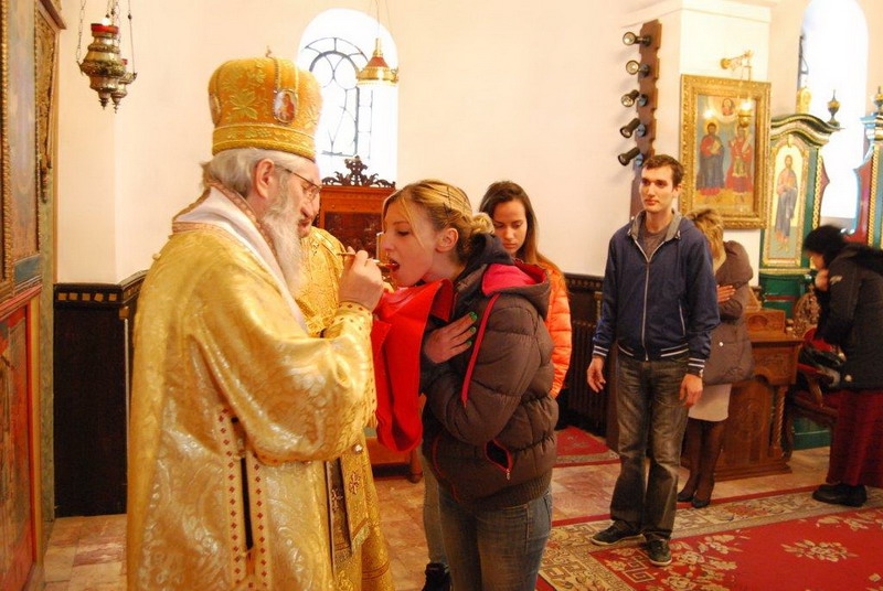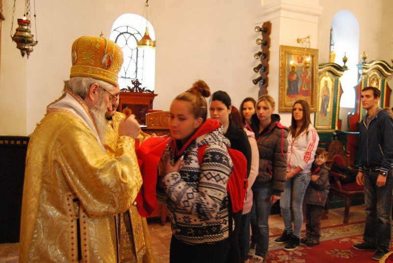 Литургији су присуствовали ученици средње Политехничке школе из Крагујевца заједно са својим вероучитељем господином Марком Гаљаком и сви су приступили Светом Причешћу.