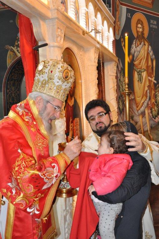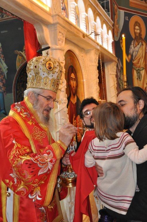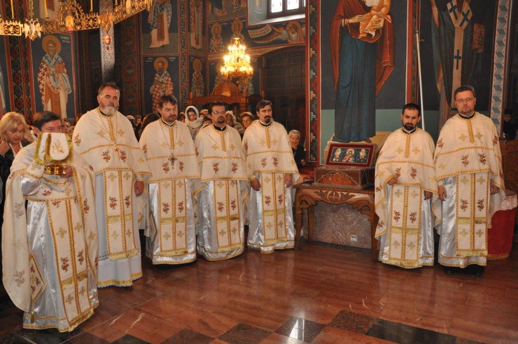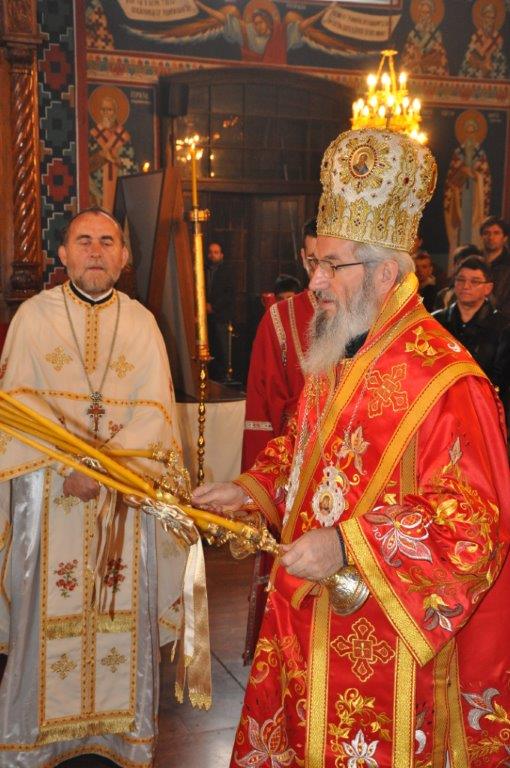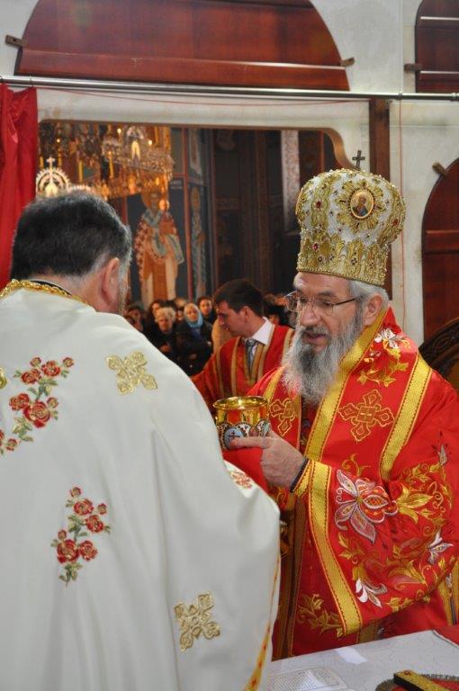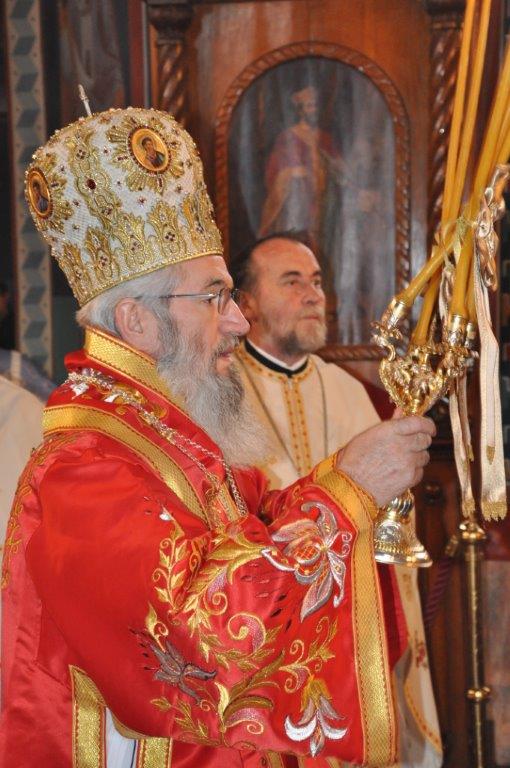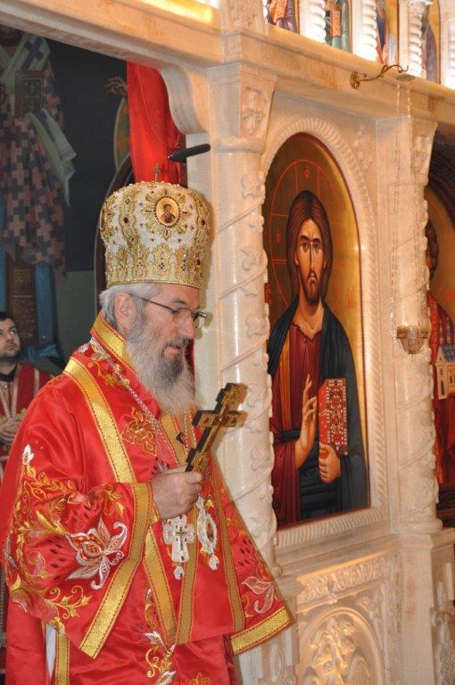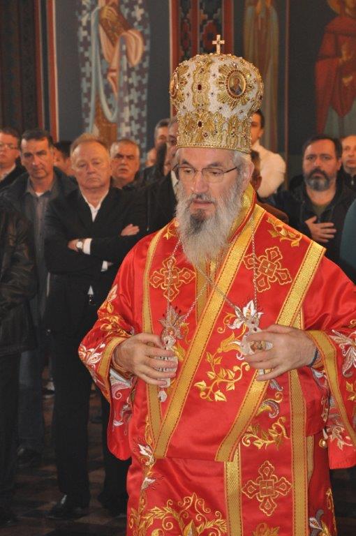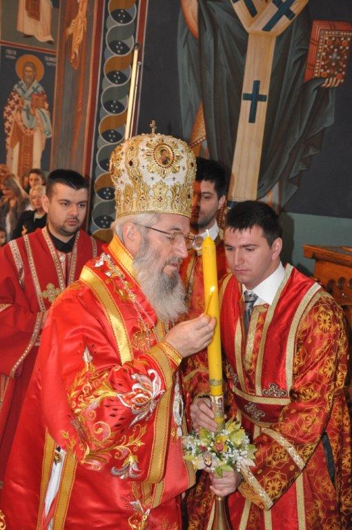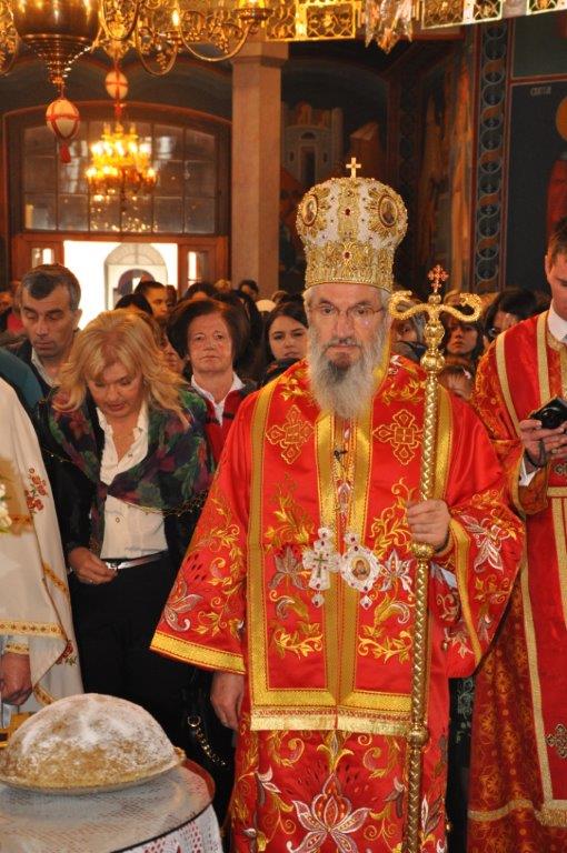 На навечерје празника, по одслуженом богослужењу, у епископској резиденцији надлежни парох о. Срећко Зечевић осветио је славску водицу. Честитајући славу владици, о. Срећко је између осталог рекао: „Преосвећени Владико! Част ми је да Вас поздравим у навечерје ваше славе, Крсног имена ваших предака и вашег дома, Светог Георгија великомученика и победоносца... Нека вас молитвама Светог великомученика и победоносца Георгија, Сведобри и свеблаги Христос укрепи здрављем на радост пастве ваше. Нека је срећна слава Владико, на многаја љета“.