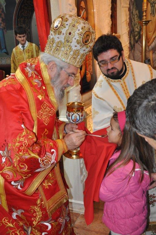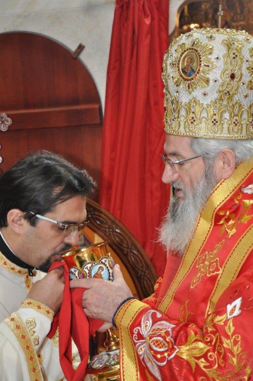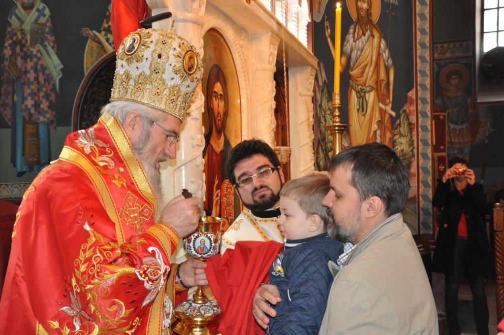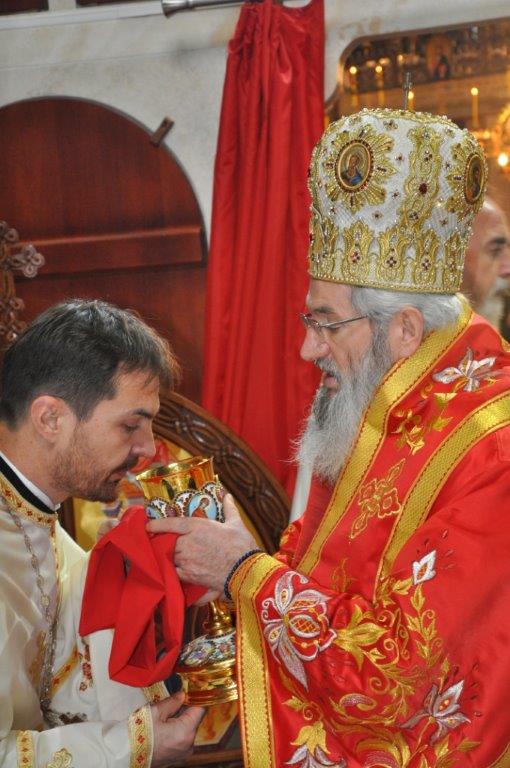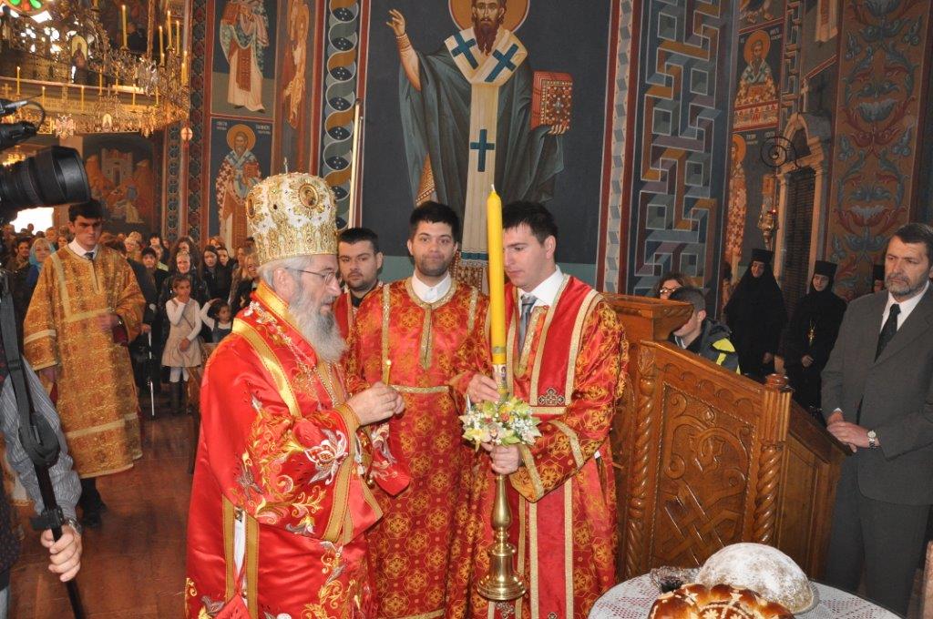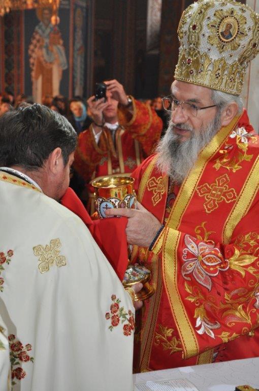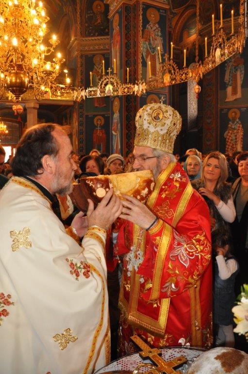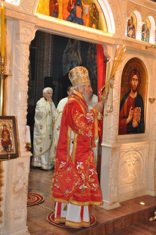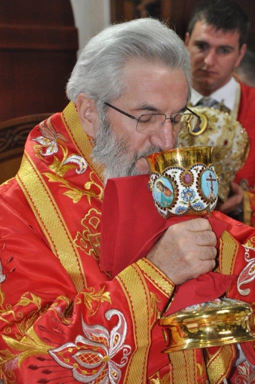На навечерје празника, по одслуженом богослужењу, у епископској резиденцији надлежни парох о. Срећко Зечевић осветио је славску водицу. Честитајући славу владици, о. Срећко је између осталог рекао: „Преосвећени Владико! Част ми је да Вас поздравим у навечерје ваше славе, Крсног имена ваших предака и вашег дома, Светог Георгија великомученика и победоносца... Нека вас молитвама Светог великомученика и победоносца Георгија, Сведобри и свеблаги Христос укрепи здрављем на радост пастве ваше. Нека је срећна слава Владико, на многаја љета“.