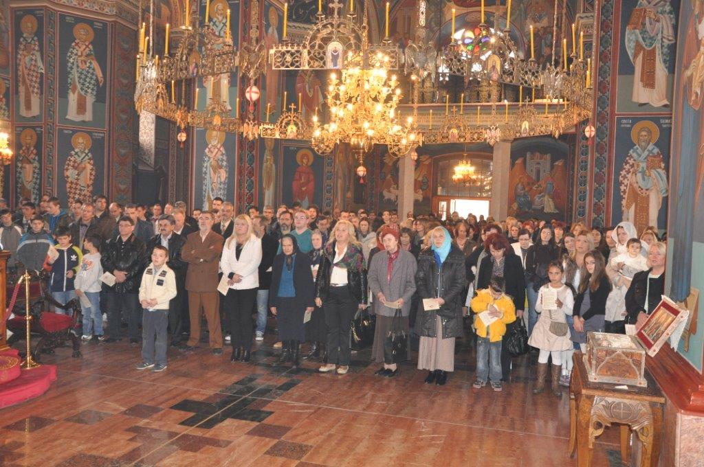 Сутрадан, на дан своје крсне славе, Његово Преосвештенство Епископ шумадијски Г. Јован служио је Свету Архијерејску Литургију у Саборном храму Успенија Пресвете Богородице у Крагујевцу, уз саслужење свештенства града Крагујевца. По прочитаном Светом јеванђељу, проповед је одржао протојереј – ставрофор Зоран Крстић, ректор Богословије Свети Јован Златоусти.