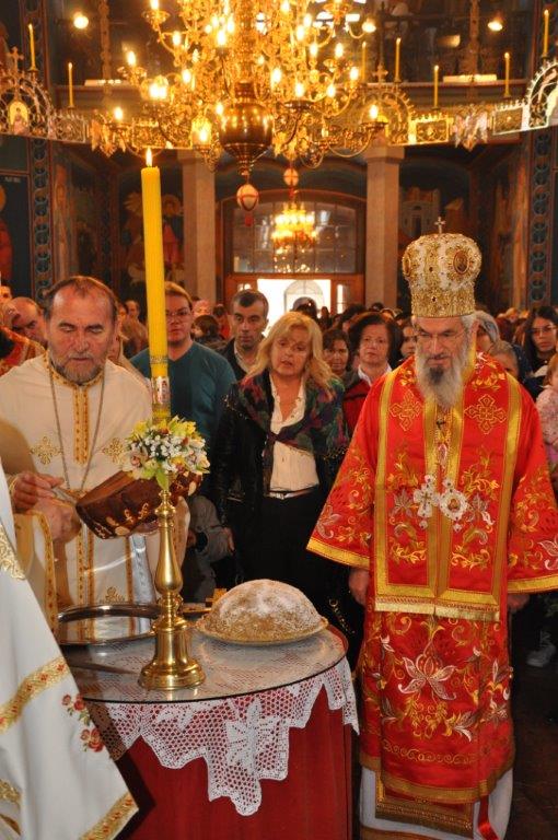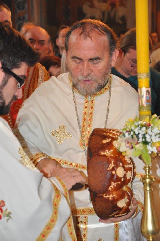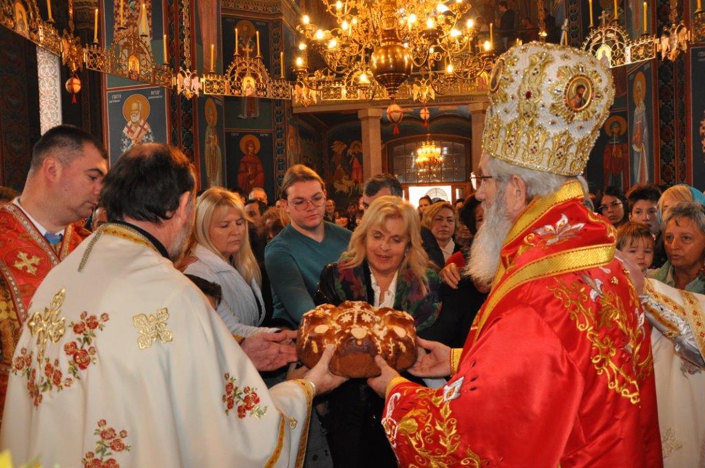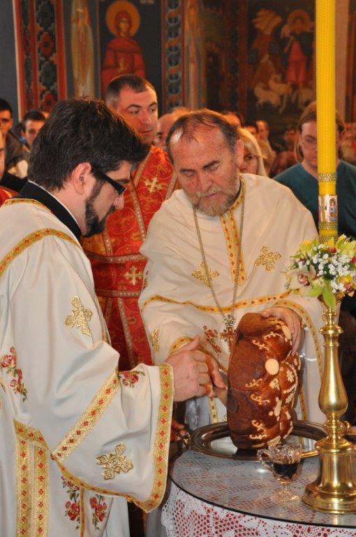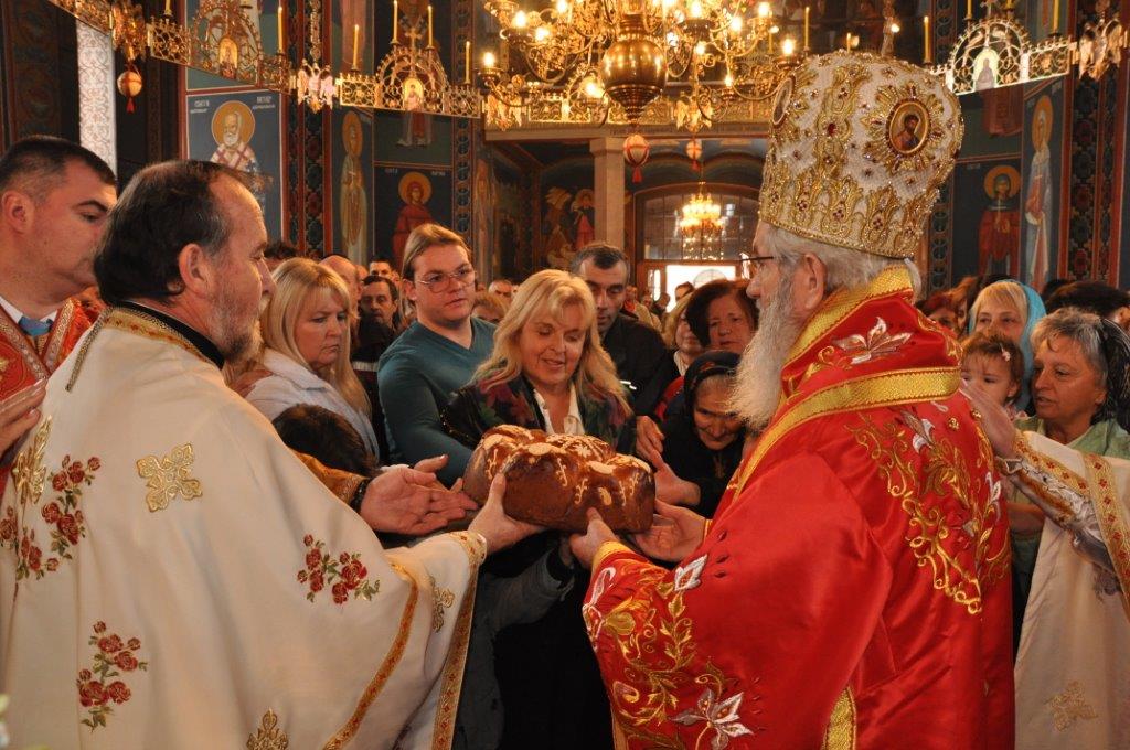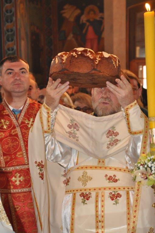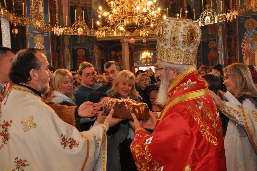 После заамвоне молитве, протојереј – ставрофор Зарије Божовић, благословио је и осветио славско жито и славски колач.