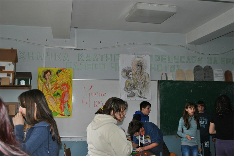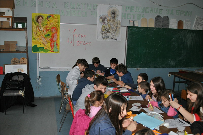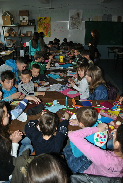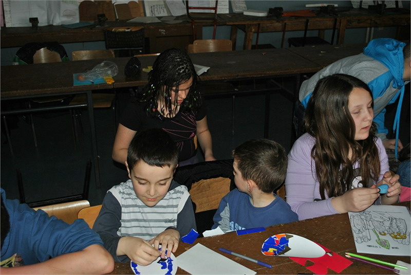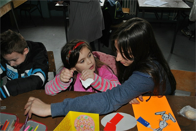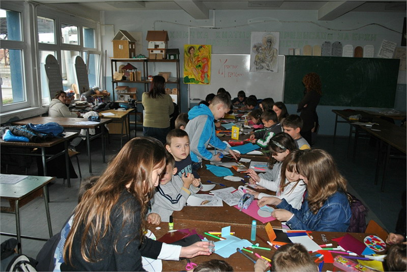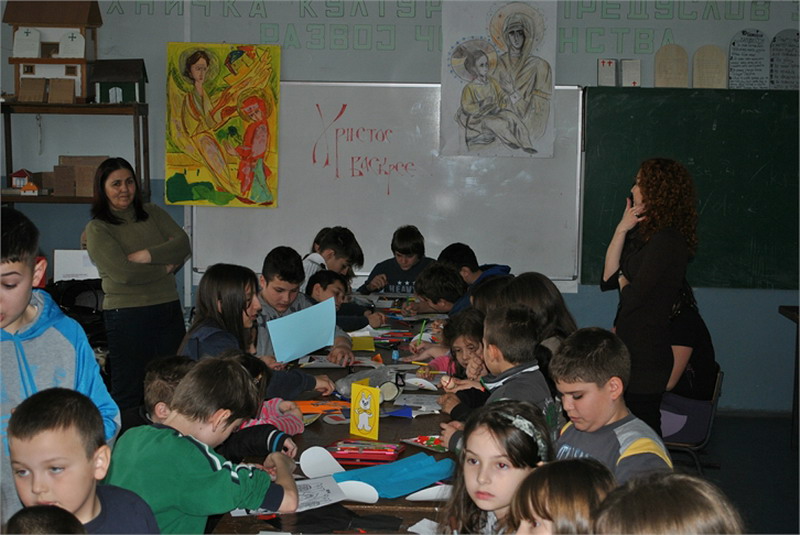 Васпитачице из Предшколске установе „Полетарац“, посетиле су нас са предшколцима, да би заједно обележили долазак радосног празника – Васкрса. Малишани су исцртавали најзанимљивије шаре на калупима јаја, унапред припремљеним од стране ученика наше школе. Временски услови нису дозволили реализацију активности у школском дворишту, али су се ђаци, полазници верске наставе и грађанског васпитања, својски потрудили да се и у учионици предшколци пријатно осећају. Радионица је реализована у сарадњи са наставницом грађанског васпитања, Анђелком Јанковић.