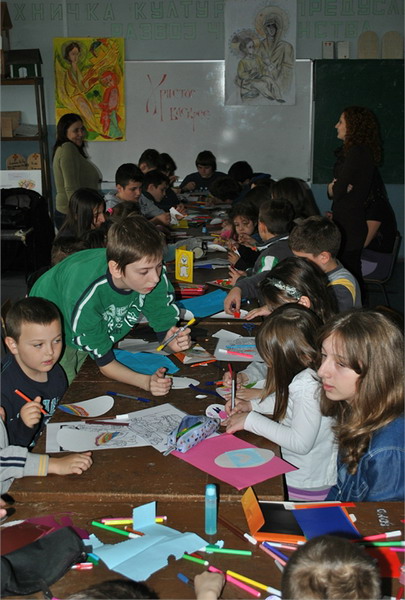 На празник Благовести, а у сусрет најрадоснијем празнику Васкрсења Христовог, у Основној школи "Свети Сава", у Баточини, организована је радионица „Васкршње фарбање јаја“.