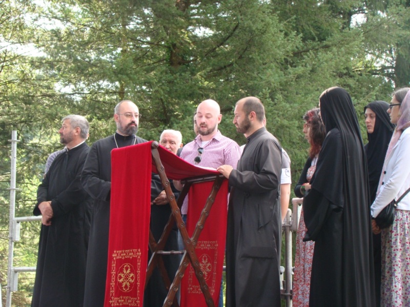 Свету Литургију служио је игуман манастира Ковиљ јеромонах Исихије (Рогић), а саслуживали су гости из Епархије бачке: духовник православне заједнице “Земља живих” протојереј Бранко Ћурчин и протонамесник Стефан Франовић, затим архијерејски намесник Колубарско-посавски протојереј-ставрофор Златко Димитријевић, гост из жичке епархије јереј Никола Вукобрат, гост из младеновачког намесништва јереј Живан Жујевић, настојатељ манастира Светог великомученика Георгија у селу Ћелије јеромонах Филотеј (Јовановић), парох рудовачки јереј Родољуб Војиновић и ђакон Никола Урошевић.
