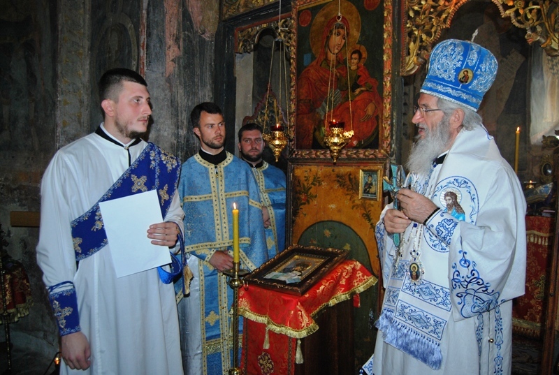 У духовној поуци Просвећени Владика је подсетио окупњене вернике рекавши, ево нас у дану пред овим иконама мајке Божије које нас окружују и пред иконом Тројеручицом да изразимо молитвено поштовање и да у исто време замолимо Пресвету Богородицу да нам помогне у данашњим потешкоћама која нису мала. Долазећи пред икону Тројеручицу треба да јој кажемо све наше невоље, за наше људске слабости, за наше духовне и телесне болести и да је у исто време замолимо да нам подари смирење, исто оно смирење које је она имала када је добила вест од архангела Гаврила.