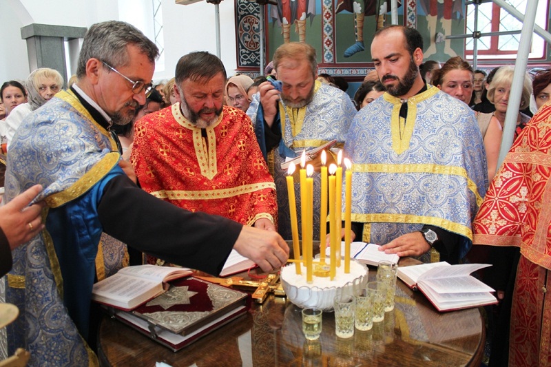 У суботу 8. августа 2015. године, у вечерњим часовима, са почетком у 18 часова, уочи празника Светог великомученика Пантелејмона служена је Света Tајна Јелеосвећења у младеновачком храму Успења Пресвете Богородице. Свету Tајну Јелеосвећења служили су: протојереј Милорад Лазић, протојереј Спасоје Марковић, протојереј Слободан Кеџић, јереј Живан Жујовић, јереј Ненад Марковић, јереј Марко Стевановић и јереј Марко Јефтић.