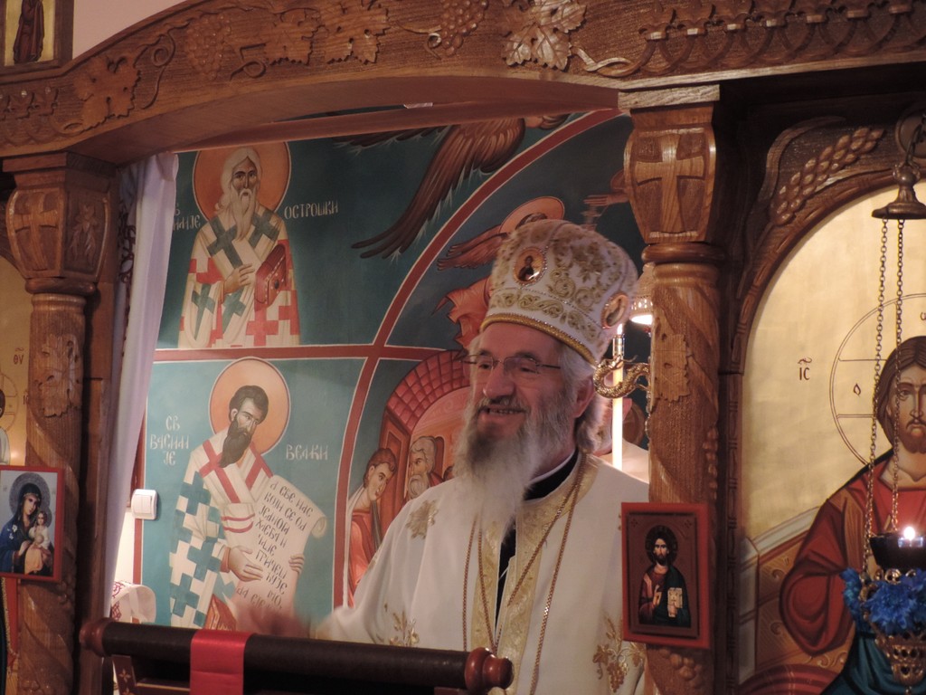 Осврнувши се на прочитано Јеванђеље у којем је дат образац и дефиниција односа мужа и жене ( „Зато остави човек оца свога и матер и прилепи се к жени својој, и буду двоје једно тело. Тако нису више двоје него једно тело.” Јеванђеље по Марку), Преосвећени Владика је дао коментар на саблазни истополних бракова. Бог је створио човека и жену да буду сарадници, породица, заједница. Без тога нема ни државе, ни Цркве. У безумним, сатанистичким покушајима да се оскрнави светиња породице, устаје се против Бога и рађања деце, што је заповест и потреба човека. Ко верује, има страх Божији, а тај страх ће нас очувати и сачувати за оно за шта смо створени – а то је живот вечни.