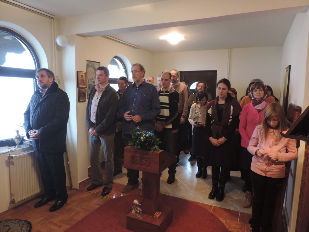 У беседи Владика је говорио о смислу живота и постојања у вери. Вера у Бога и живот по тој вери даје сваком човеку снаге да победи сва искушења, патње, муке и беде. Зато је вера основ нашег живљења, како каже апостол Павле, вера у онога кога се надамо да ће доћи и дати нам оно што смо у животу заслужили. Човек добија награду за начин на који је веровао и по тој вери живео. Ако живимо и умиремо са вером у Бога, онда умиремо са надом на васкрсење, када дође Исус Христос. Живот треба да се састоји у ишчекивању другог века, оног који је непролазан. Наша је реалност овај век и свет у којем смо, али стално треба имати на уму да је овај живот дат да бисмо започели да задобијамо Царство Небеско, које ће се остварити у сусрету са Господом Исусом Христом. Апостол Павле опомиње да вером ходимо, а не знањем. Вера је већа од знања, јер где стаје разум и ученост, ту наступа вера. Она нам помаже и објашњава да схватимо оно што не можемо разумом. Веровати значи припадати ономе коме верујемо. Волети значи давати себе ономе кога волимо. Зато су љубав, вера и нада тројство које је неодвојиво једно од другога. Када дође Господ, престаће вера и нада, јер ће Он већ бити ту, али љубав неће престати, јер је она веза савршенства. Вера је потребна да пребродимо искушења која долазе од свих и са свих страна. Треба испитати да ли искушења долазе и од нас самих, а не само од других. Ако то испитујемо, онда се и боримо. Лакше је победити човечанство, него самога себе, ако смо горди и сујетни. Ко је горд, не верује у Бога, јер је довољан самом себи. Он је лицемер, или по Јеванђељу, фарисејски настројен човек. Апостол Павле каже да без вере не можемо угодити Богу. Ко хоће да угоди Богу, треба да верује у веру и у то да ће се испунити све што је речено, јер Бог награђује онога који верује у Њега. Вера је одбрамбени зид који нас чува са свих страна од разних врста напада и омогућава да истински живимо. Без ње ми можемо да ходамо, дишемо, али смо такви налик празној, напуштеној кући у коју свако може да улази и ради у њој шта хоће. Када смо испуњени вером, испуњени смо Богом. Све могу у Христу који ми моћ даје, каже апостол Павле. Силу и моћ треба да тражимо у Христу, јер што више верујемо у Њега, то више осећамо своје слабости, а слабост је вапај за Богом – бесмртним и непролазним. Смирење је кад знамо да ништа не можемо без Христа, Човек, сам по себи, ништа добро не може да уради, јер је испуњен собом, а не Богом. Благодат је сам Господ Исус Христос, а он се налази у човеку који има веру, љубав и наду, има смирење, а одбацио је гордост. Божијом милошћу и благодаћу се спасавамо. Сви наши трудови, постови и молитве празни су без Божије милости. Благодат и милост Божија се добијају крштењем, а расту онолико колико човек расте у врлинском начину живота. Кад слаби благодат, слаби и живот. Тамо где је благодат, ниједно искушење не може да савлада човека. Треба молити Господа да нам помогне да верујемо, желимо и трудимо се да будемо на путу спасења.