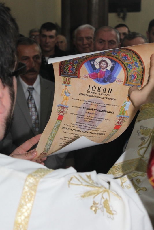 Након заамвоне молитве служен је помен блаженопочившем Епископу шумадијском Г. Валеријану, а потом је додељена Архијерејска грамата признања господину Божидару Иванчевићу, док су Архијерејске грамате захвалности добила господа: Марко Драгањац, Душан Јевић, Мирко Ненадовић и Дарко Матовић сви из Ковачевца. Након Литургије заједничарење је настављено на трпези љубави, која је организована од стране пароха ковачевачког протојереја Милорада Вуловића.