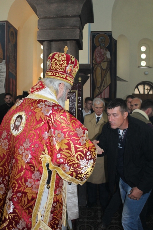 Тумачећи одломак из Јеванђеља по Матеју, наш Владика је верном народу појаснио значење вере жене Хананејке. Посебну пажњу Епископ је посветио термину истрајности. Без истрајности у вери и животу нећемо достићи веру жене незнабошке, нити ћемо успети да се одупремо свакодневним бурама и искушењима. Указано је на пример истрајности самог Господа, али и Праведног Јова. Пример жене Хананејке нам показује да се она не вређа на то што Господ каже да није добро узети хлеб од деце и бацати псима, већ нам њен одговор казује: „нека сам и пас, али сам твој пас Господе а ти нећеш дозволити ни да црв под кором дрвета пропадне“. Епископ Јован је нагласио да је поука ове перикопе за сва времена и за сваког хришћанина да шта год да учинимо и у каквој год невољи да се нађемо јака вера у Господа Христа, односно сам Христос нам једино може помоћи. Не треба тражити помоћ од лажних богова и људи који им служе. „Потребно је имати велико смирење и стрпљење као Хананејка и Господ је ту да нам каже: Велика је вера твоја; нека ти буде како хоћеш!“, нагласио је Владика.