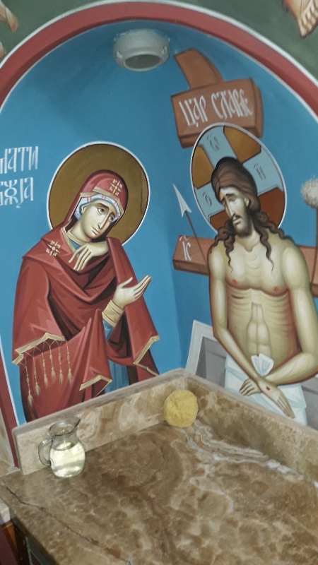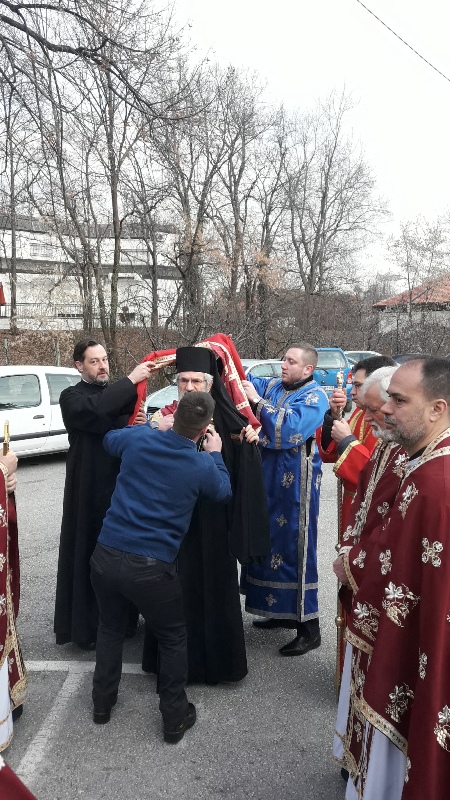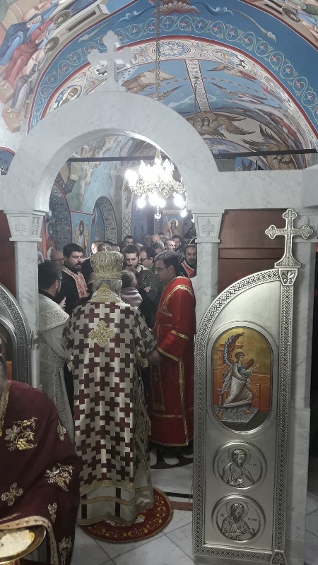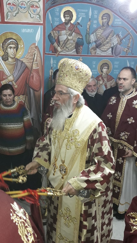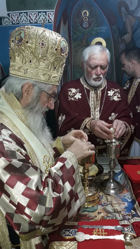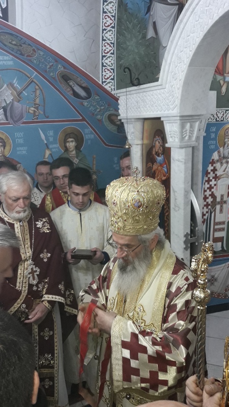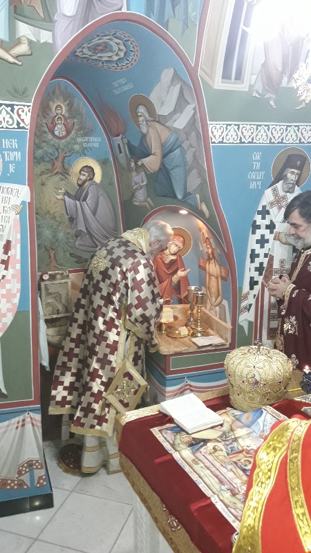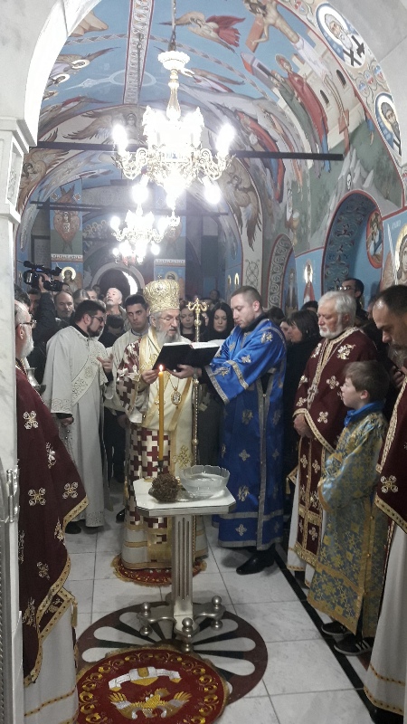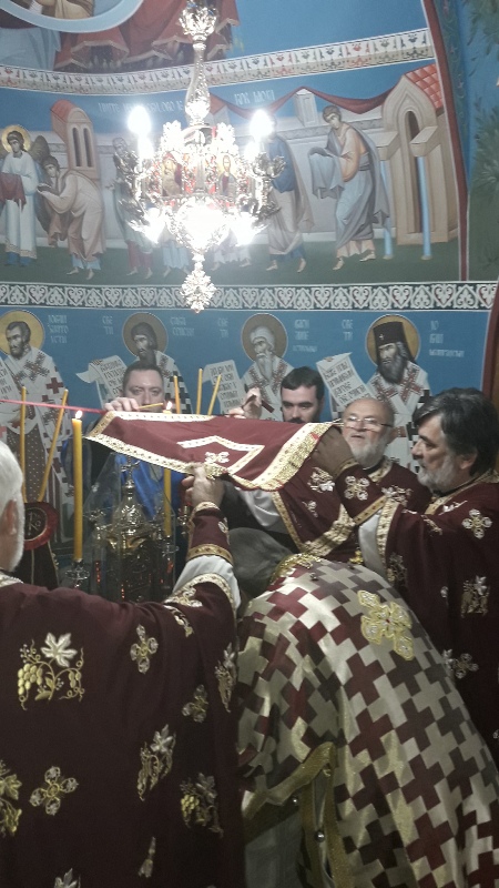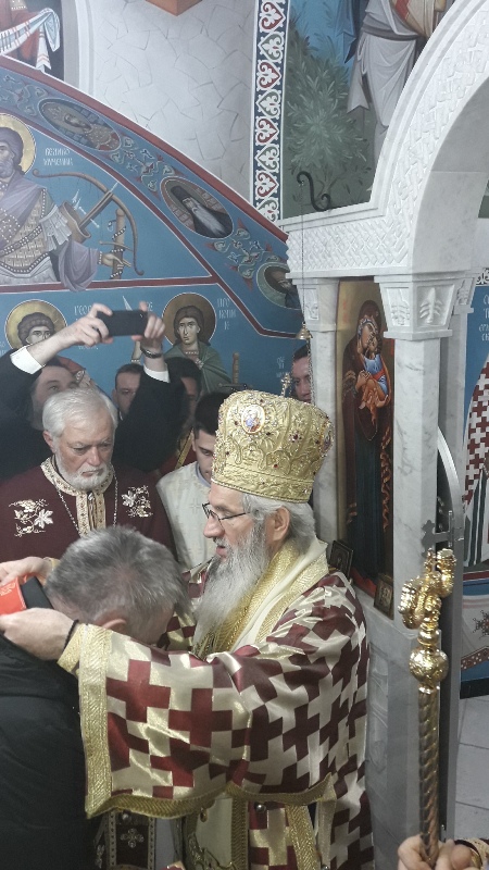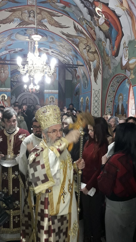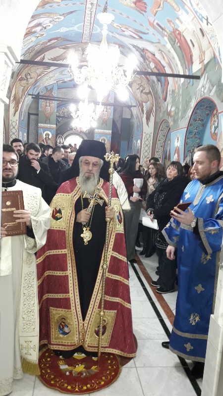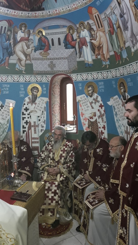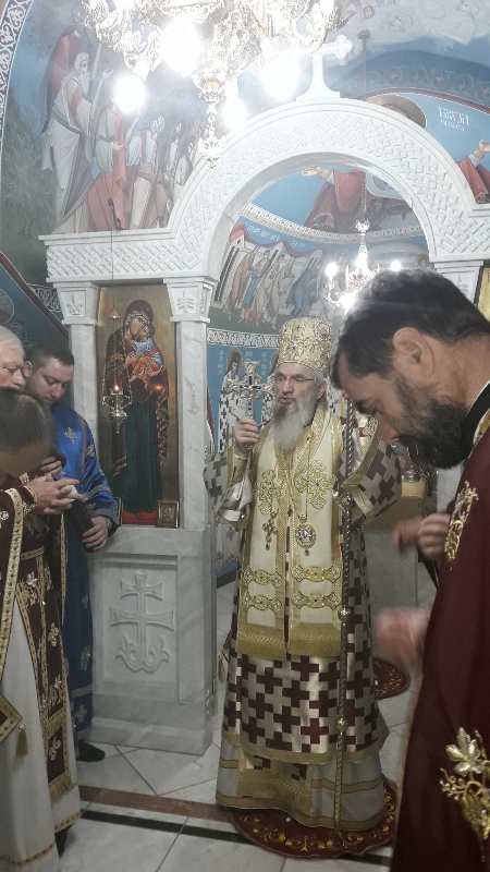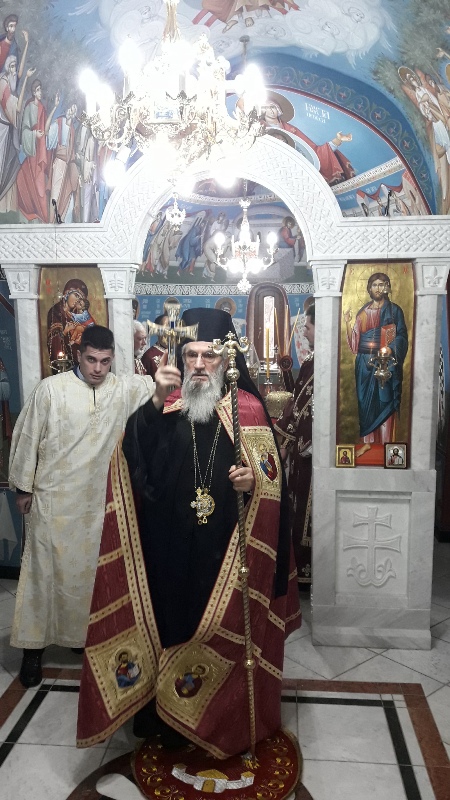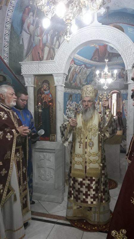 Након прочитаног светог Јеванђеља Епископ Јован је поучио окупљени верни народ својом беседом. На самом почетку беседе. Епископ Јован се осврнуо на цитат: „Ја сам врата, ко уђе кроз мене спашће се и ући ће и изаћи ће и пашу ће наћи“ (Јн 10, 9) и рекао да је овај део из Светог Писма Новог Завета нада свима нама и да нам је ово потврда да је Исус увек ту за све нас. Поред тога што Исус о себи говори као о вратима он себе пореди и са добром пастиром који свој живот полаже за овце. Ми никада нисмо имали, нити ћемо имати бољег пастира од Господа Исуса јер нас је он својом жртвом избавио од робовања греху и смрти. Владика Јован је дао пример оваца које су заједно са својим пастиром и када је он са њима оне су сигурне и у случају напада вукова, тако и ми треба да будемо сигурни у Исуса и требамо знати да свако искушење које нам се нађе на путу заправо је ништа ако живимо Јеванђељем и Црквом. Морамо остати уз Бога јер ако смо без Бога онда бежимо од себе и прибегавамомржњи, гневу и пакости који нас разарају. Исус је тај који је истинити Бог и истинити човек и он нам је пут ка Царству Небеском. Сви светитељи који су изображени на фрескама у храму су нам заправо водичи јер су и они како можемо да чујемо из описа њихових живота били подвргнути страдањима, али нису због тога поклекли, већ су имали наду и веру у Господа Исуса Христа и са том вером су успели да се изборе против свих искушења. Епископ нам је предочио и то да су нам фреске књиге без слова јер нас оне уче о животима светитеља и о њиховим подвизима.Сви ти светитељи требају да нам буду примери и требамо се угледати на њих и на њихове подвиге. Сви ти светитељи су превазилазили све недаће и проблеме јер су поштовали две највеће заповести, а то су „Љуби Господа Бога свога свим срцем својим и свом душом својом и свом мишљу својом“ (Мт 22, 37) и „Љуби ближњега свога као самога себе“ (Мт 22, 39). Свој живот треба да управљамо овим заповестима јер и сам Господ је рекао „Заиста вам кажем: кад учинисте једном од ове моје најмање браће, мени учинисте“ (Мт 25, 40), а Исус је тај који нас води у Царство Небеско и он је Пут, Истина и Живот.