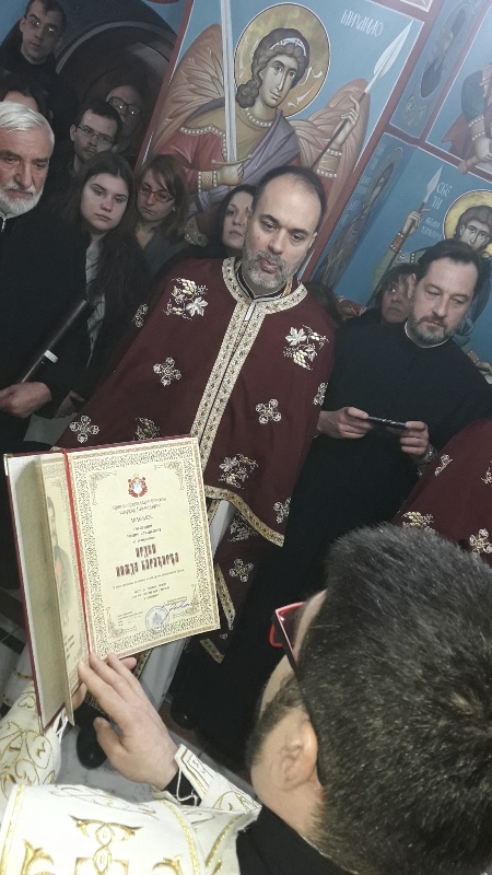 Након свете Литургије, Епископ Јован је доделио архијерејску грамату захвалности господину Будимиру Божићу из Аранђеловца, архијерејску грамату признања госпођи Наталији Вучићевић и орден Вожда Карађорђа господину Горану Стешевићу, а притом се и захвалио свим осталим верницима и приложницима који су помогли осликавање овога храма.