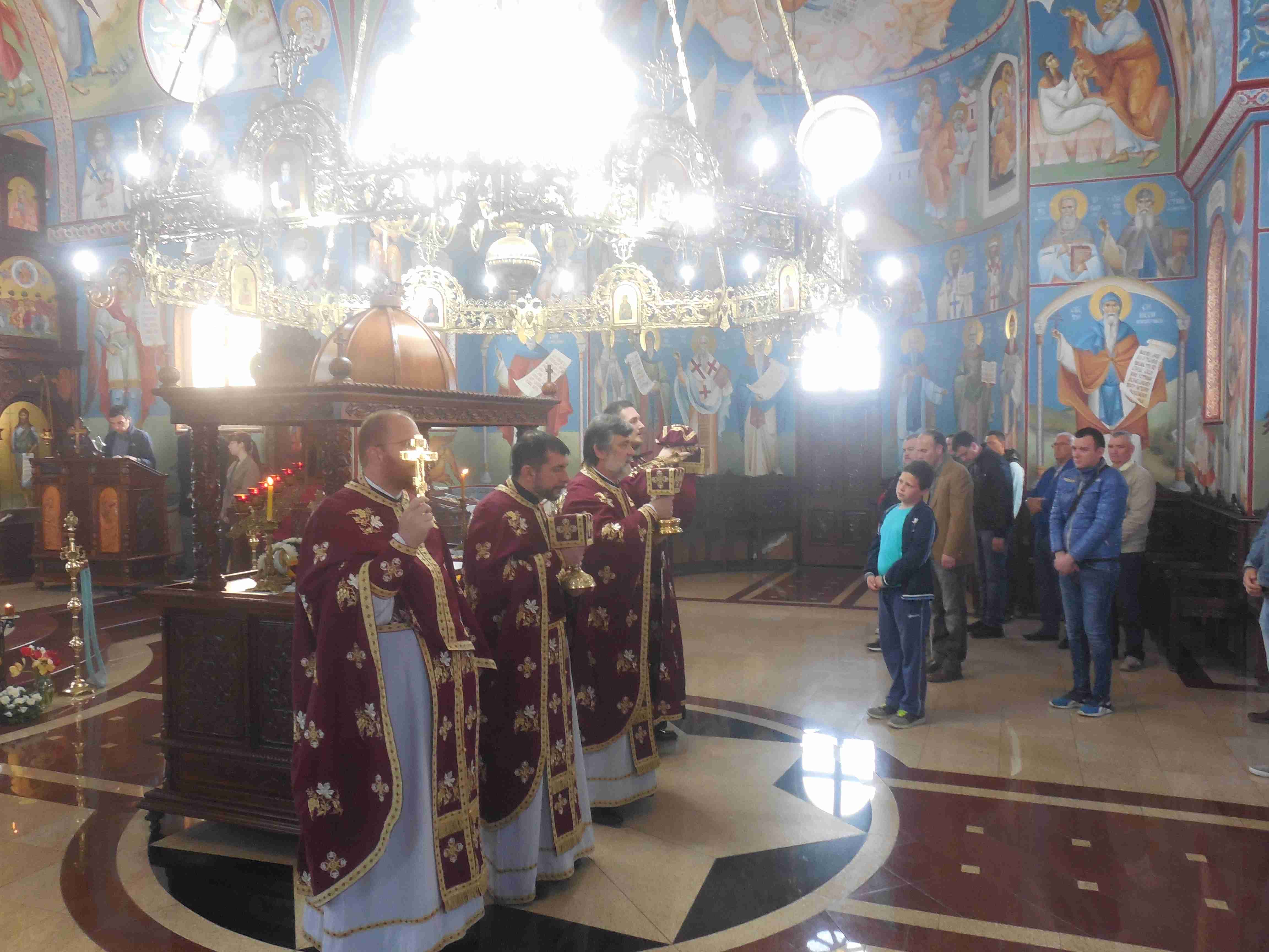 На Велики понедељак, уторак и среду служене су Свете Пређеосвећене Литургије на којима је присуствовао велики број верника. На Велики четвртак, када се наша Света Црква сећа догађаја омивања ногу Апостолима од стране Господа Христа, установљења Свете тајне Евхаристије тј. Тајне Вечере, натприродне молитве и предаје Господа Исуса Христа у руке грешника у свим храмовина нашег намесништва је одслужена Света Литургија на којој је велики број верника приступио Светој Чаши и тако се сјединио са Христом који је за нас и установио ову Свету тајну. Празници су се низали један за другим, а потом смо дошли и до Великог и Страдалног петка, дана када је Господ разапет за све нас и тиме показао колику љубав Бог има према нама када је дозволио да Његов јединородни Син буде предан да се разапне. Како доликује на овај дан су служени Царски часови, а у поподневним сатима је изнета Плаштаница и постављена на Христов Гроб, а затим је и служено опело Господу Христу. Верници су целога дана долазили у Свети Храм где су се молили Богу, а потом су се и поклањали и целивали Плаштанице које су биле постављене у храмовима. У велику суботу служена је Света Литургија Светог Василија Великог са вечерњом службом и верни народ је и на овај дан у великом броју приступио Светој тајни Причешћа. Свештенство је исповедило велики број верника који су се спремајући за Свету тајну Причешћа долазили у храмове и пред Господом и својим свештеником се исповедали за своје учињене грехе.