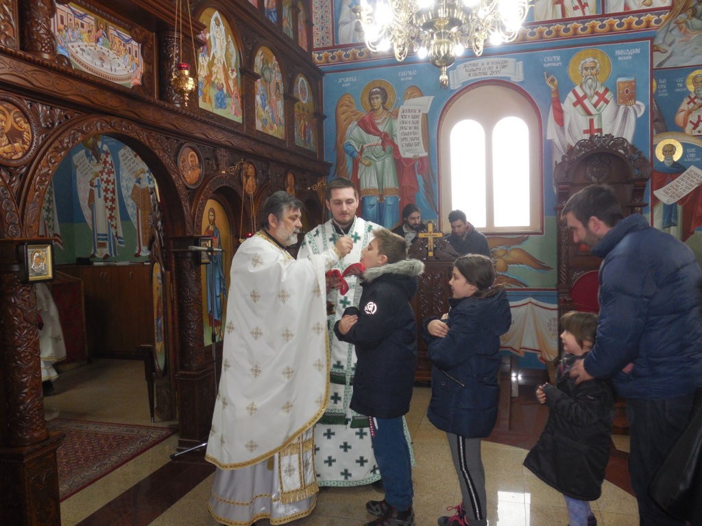 У недељу, 14. јануара, када наша Света Црква прославља успомену на Образање Господње и Светог Василија Великог, у храму Светих апостола Петра и Павла у Аранђеловцу је служена Света Литургија.