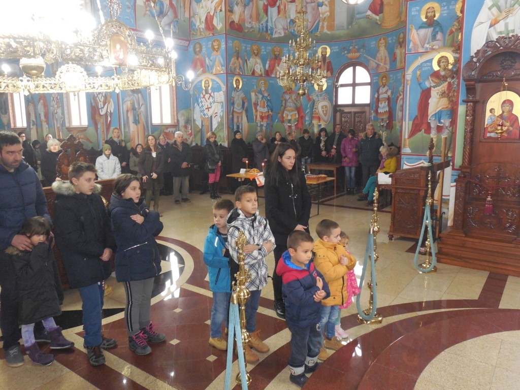Свету Литургију је служио архијерејски намесник орашачки, протојереј-ставрофор Мићо Ћирковић уз саслуживање протојереја Слободана Раковића, протонамесника Александра Миловановића, јереја Милоша Мијатовића и ђакона Немање Искића. Након прочитаног Светог Јеванђеља беседу опупљеним верницима је произнео протојереј Слободан Раковић нагласивши да је мир Божији оно чему треба да стремимо и за шта треба да се урдно молимо. Након Свете Литургије одслужен је молебан за почетак Нове Године, а потом су пререзани славски колачи данашњих славара.