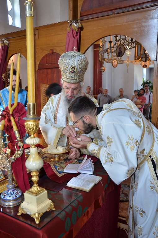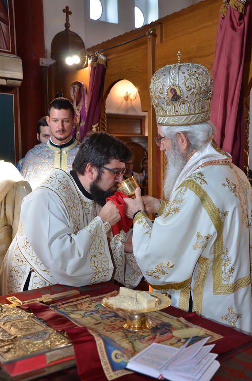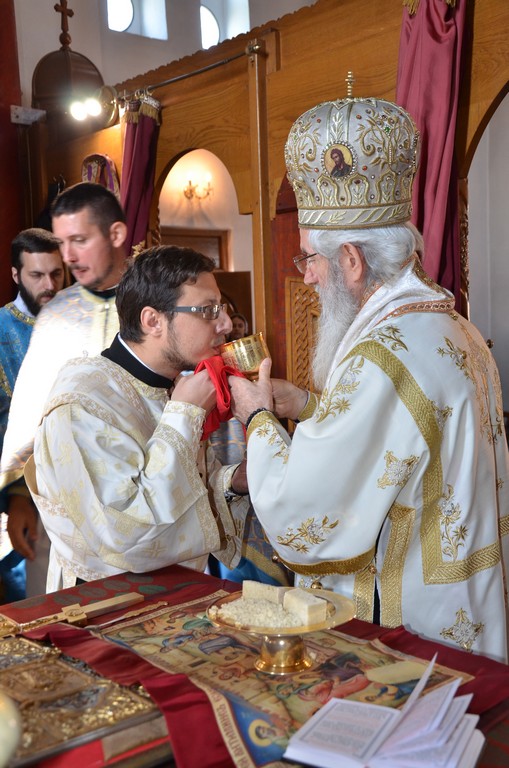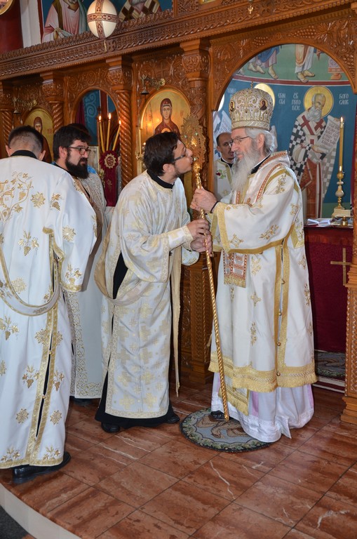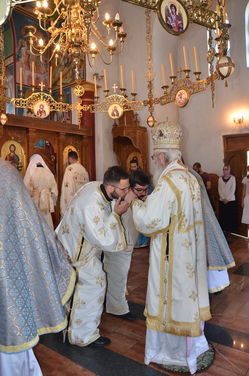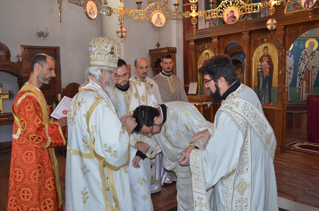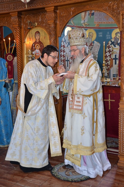 Владика се новорукоположеном обратио очинским речима говорећи да се благодаћу Божијом ми спасавамо. Ђакон значи слуга, не у том смислу овосветском, него Црквеном смислу, да смо позвани да служимо. Ако човек буде научио да служи онда ће од те службе и дарове да прима. Ко олтару служи да од олтара и живи, речи су Апостола Павла. Што више служимо у смирењу и молитви већи дар ћемо добити. Служење и јесте да заслужимо оно што нам је потребно. Потребан нам је Бог и Црква. Овај дар се чува да би се сами сачували. Господ даје дар на дарове. За наше духовно прање је потребна Црква. У Њој су најпотребнија средства за чишћење душе. Слушамо да бисмо научили. У Цркви се слуша, јер се живи богослужењем.