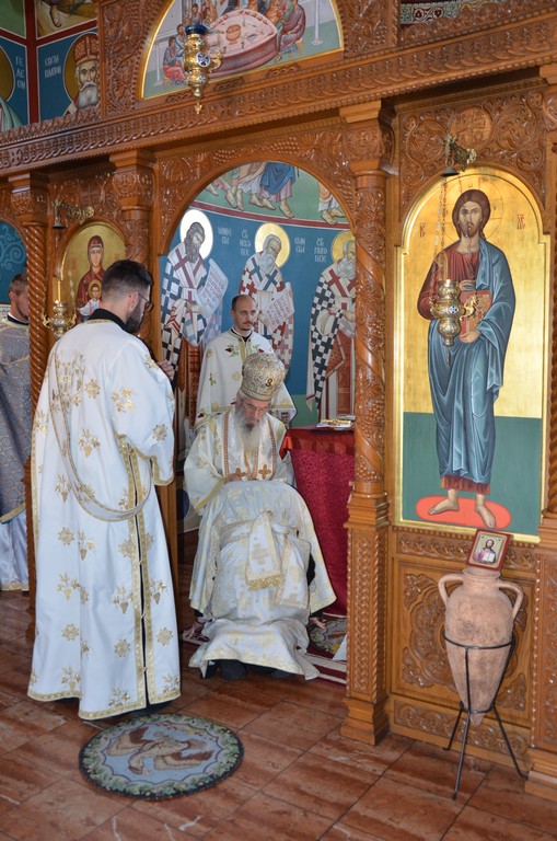 У јеванђељу по Матеју које је тог дана читано, које говори о Другом доласку Господњем, Његово Преосвештенство је беседио по устаљеном поретку и традицији. Том приликом је Преосвећени рекао да је Господ позвао верни народ да не прихватају лако оно што пророци од овога света проповедају. То је била једна јерес која је говорила да ће Христос доћи за хиљаду година. Зашто тако људи говоре? Зато што не читају Свето Писмо. Христос тамо говори да о Другом Доласку Господњем нико не зна осим Оца. Као што муња излази са Истока и сине са Запада тако ће бити долазак Сина Човечијега. Биће као муња, изненада. Без обзира да ли си у долини или на брду, сви муњу виде. Доћи ће нови лажни Христоси. Биће земљотреса, ратова, невоља али то није крај. Господ хоће да нам каже да не прихватамо те лажне пророке и учитеље. Неће бити потребно да нико објави Христов долазак јер ће он бити свима видљив као муња. Господ каже да стражимо и да будемо будни јер не знамо ни дана ни часа када ће Он доћи. Неће ићи од куће до куће и од села до села. Неће долазити, управо због тога јер ће се Он појавити у трену. Од тог тренутка, зависи наш живот вечни. Господ каже да ће нам судити у ономе у чему нас нађе. Господ хоће да нас веже уз себе. Христос лежи да подигне пале и да оне мудре обори. Кога то Господ треба да обори? Бог жели да се човек спасе. Он мисли на оне који се праве да су мудри а не верују у Бога. Христос говори да човек не тражи од онога што надилази људски ум. Не треба се оптерећивати тим Даном када ће доћи, јер то не знају ни анђели. Човек воли да се оптерети нечим и да му блуде мисли. Ми се хранимо тим мислима. Савест наша и дух наш не сме да заспи. Чиме је невеста оптерећена? Само када ће са жеником Христом да се сусретне. Човек у заједници је човек који је заштићен. Наша заједница ако није са Богом онда је узалудна.
