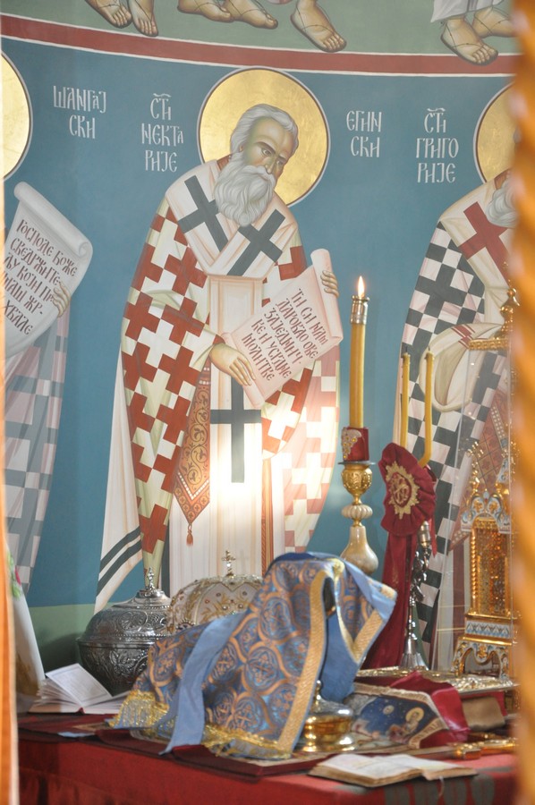 У беседи којом се обратио верном народу, Владика Јован протумачио је Господњу заповест која је дата свим хришћанима и која гласи: “Ви сте светлост свету”. Први хришћани у Антиохији су се називали светима јер су имали једну душу и једно срце, говорећи да је све наше. Међу првим хришћанима нису постојале поделе које данас постоје. Данашње поделе могу се превазићи само истинским заједничарењем у Цркви Христовој кроз послушност заповестима Божијим. Као хришћани позвани смо да сведочимо Бога, да живимо у чистоти срца свога. Владика нас поучава: “Чувајмо пламен своје свеће, јер ако изгубимо светлост ходаћемо у тами”. Бог у светима живи, зато на светој Литургији и говоримо: светиње светима. “Наш позив је светост, а светост се постиже постепеним освећењем душе и тела, постепеним усавршавањем у хришћанским врлинама”, нагласио је Преосвећени Владика Јован, подсетивши нас да се на свом путу освећења морамо наоружати стрпљењем чинећи света и богоугодна дела.