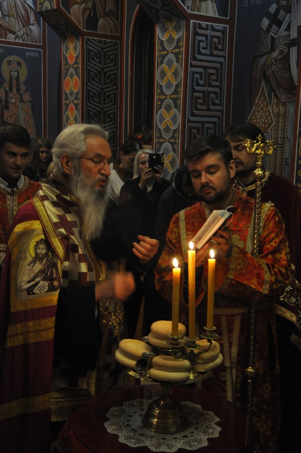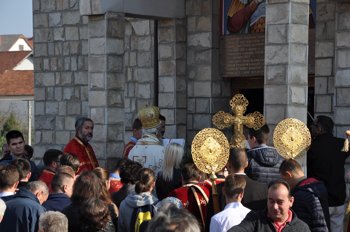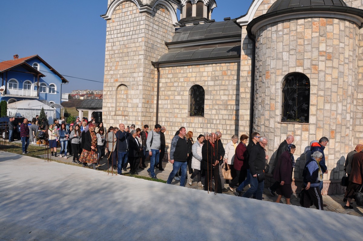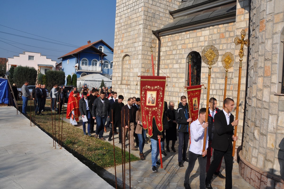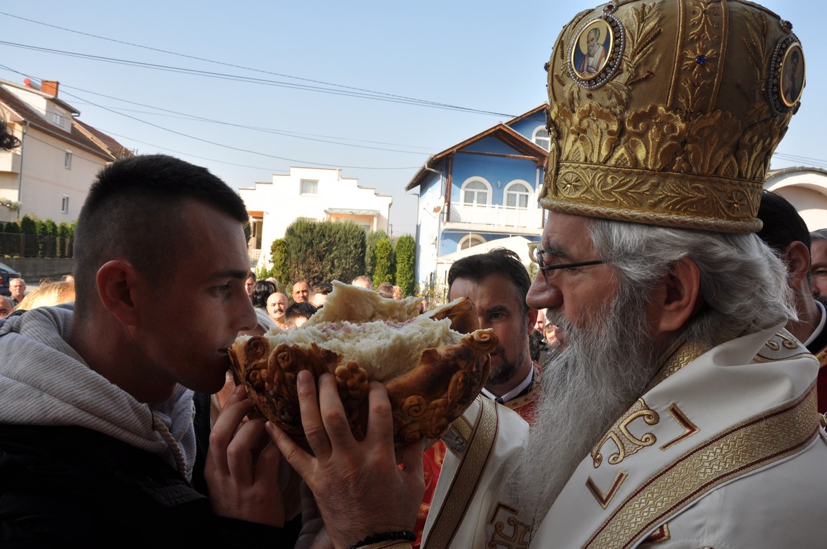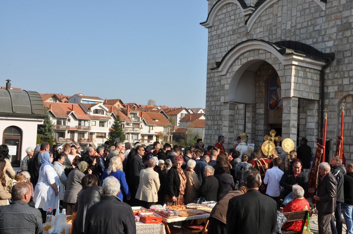 Након свете Литургије уследио је опход око храма и чин резања славског колача, после чега је уследила трпеза љубави приређена од стране колачара госпође Снежане Филић.