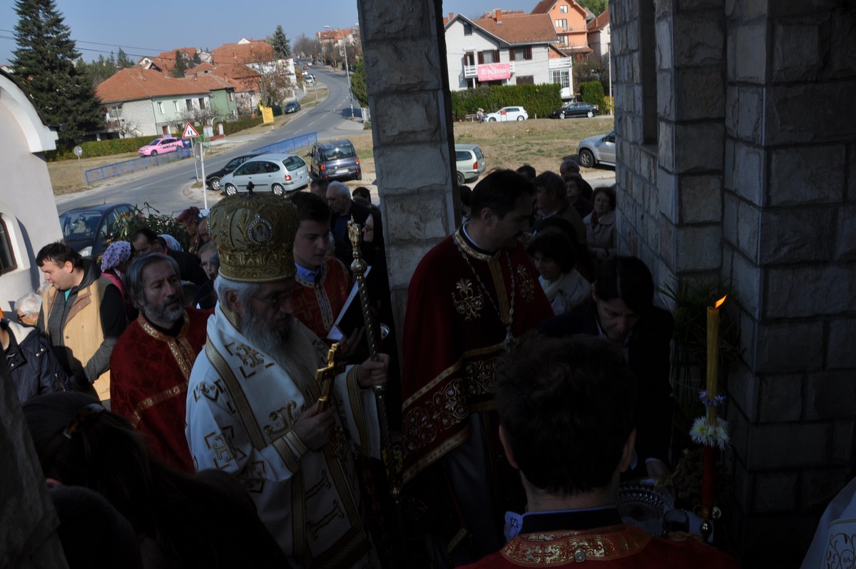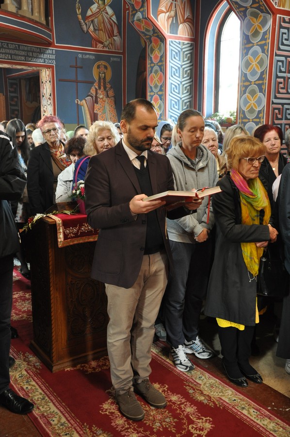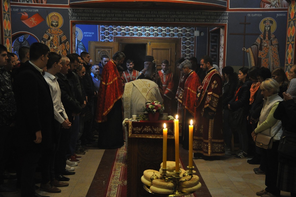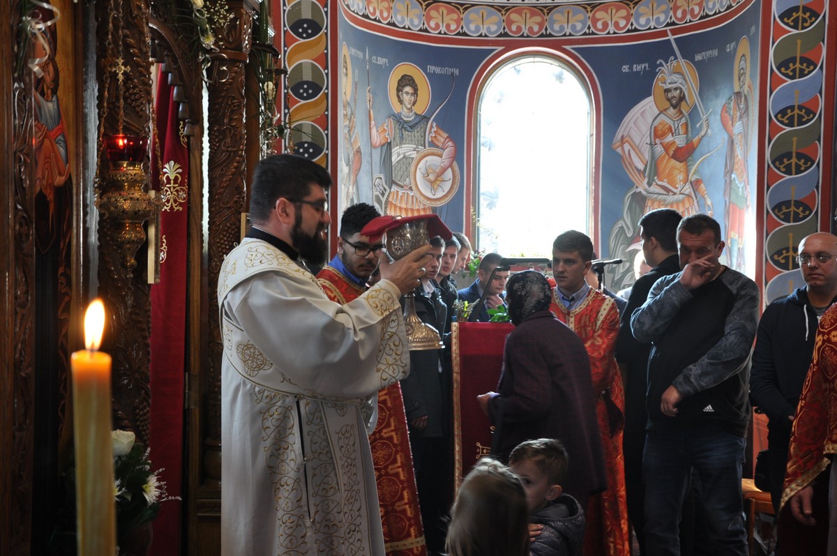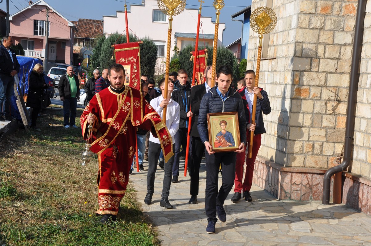 Након свете Литургије уследио је опход око храма и чин резања славског колача, после чега је уследила трпеза љубави приређена од стране колачара госпође Снежане Филић.