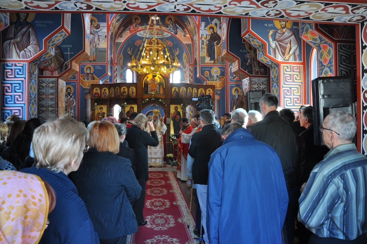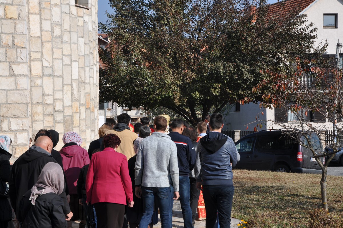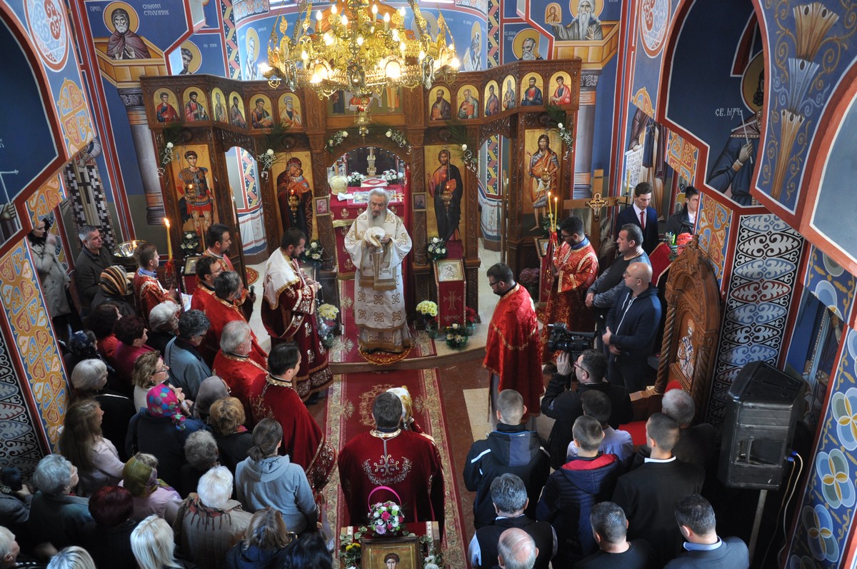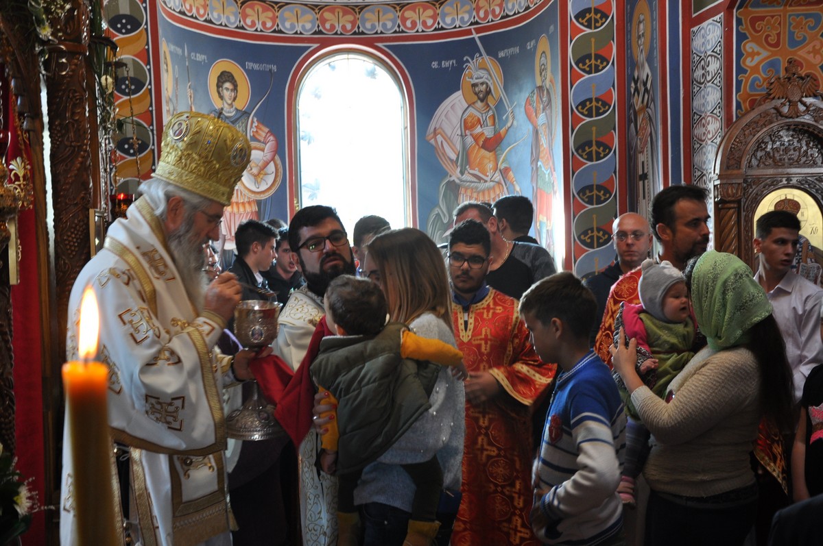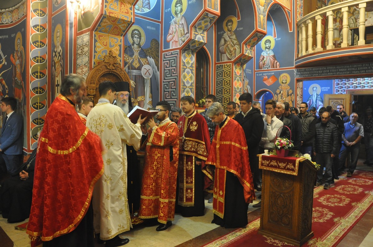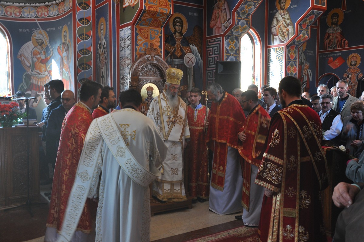 Након свете Литургије уследио је опход око храма и чин резања славског колача, после чега је уследила трпеза љубави приређена од стране колачара госпође Снежане Филић.