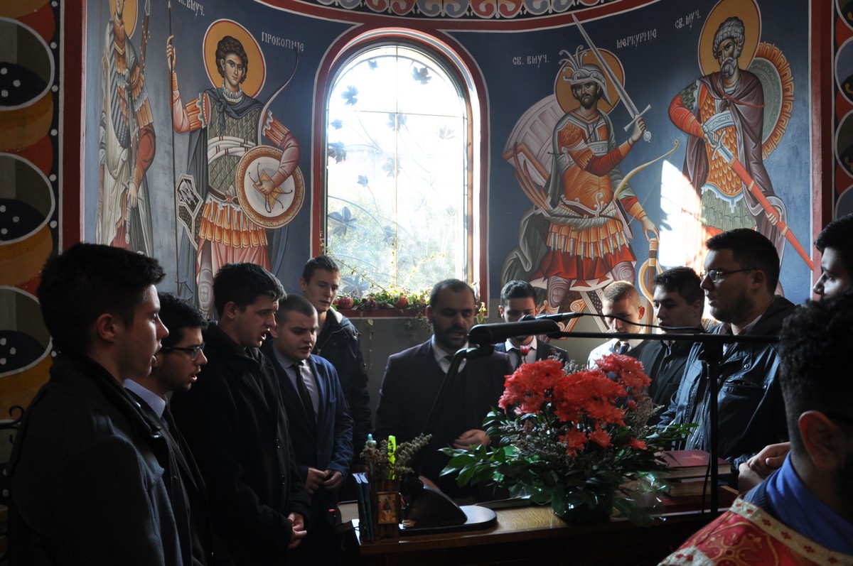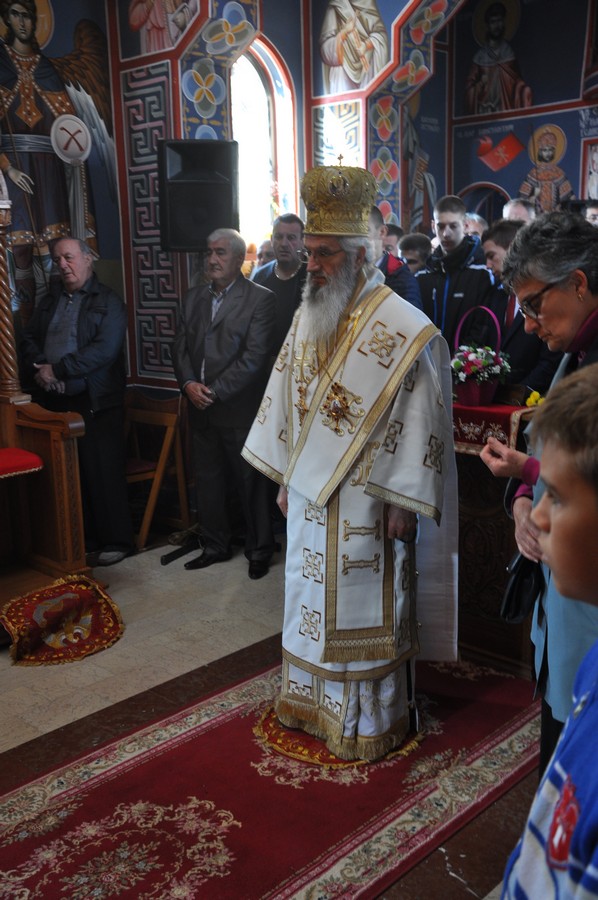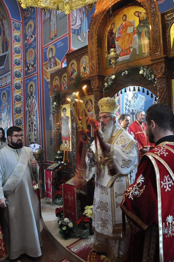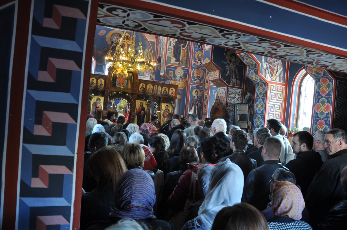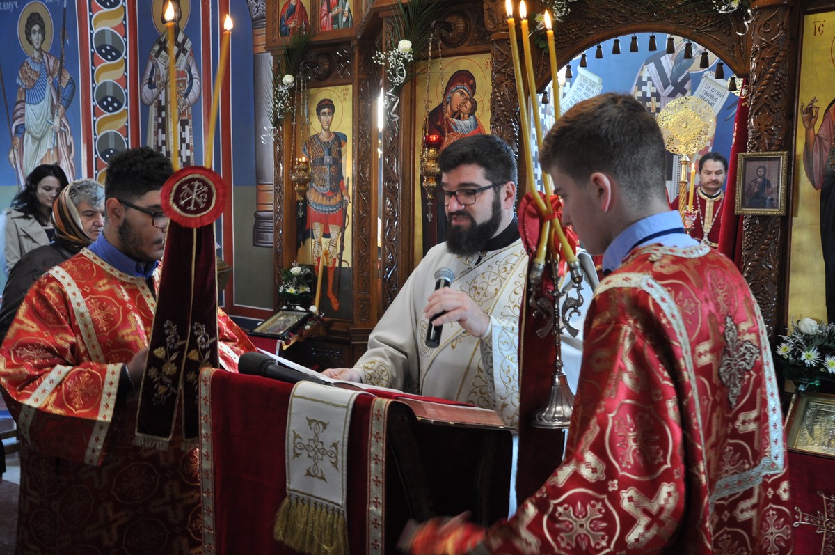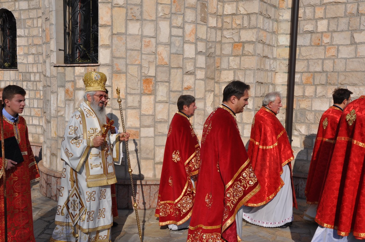 Након свете Литургије уследио је опход око храма и чин резања славског колача, после чега је уследила трпеза љубави приређена од стране колачара госпође Снежане Филић.