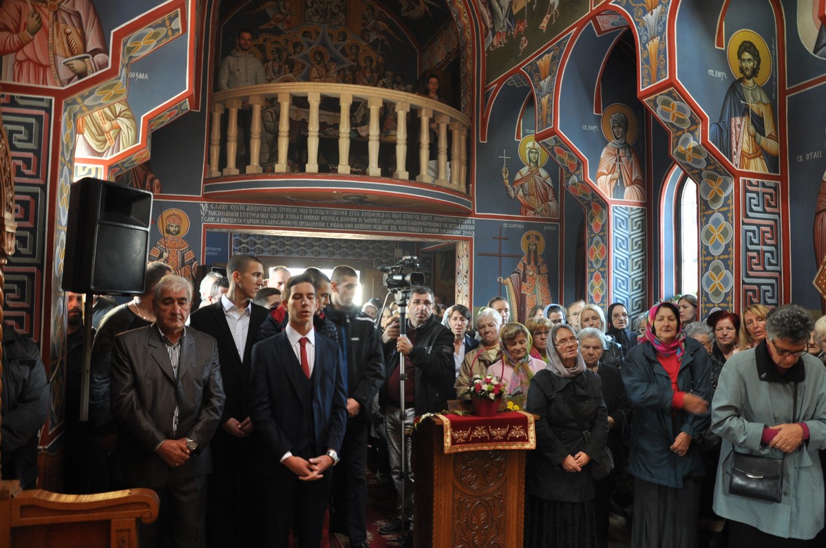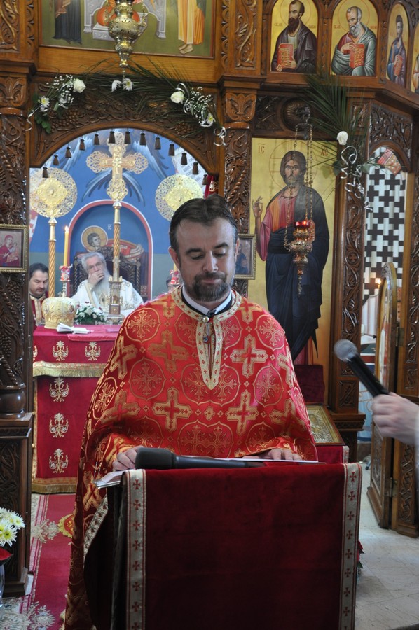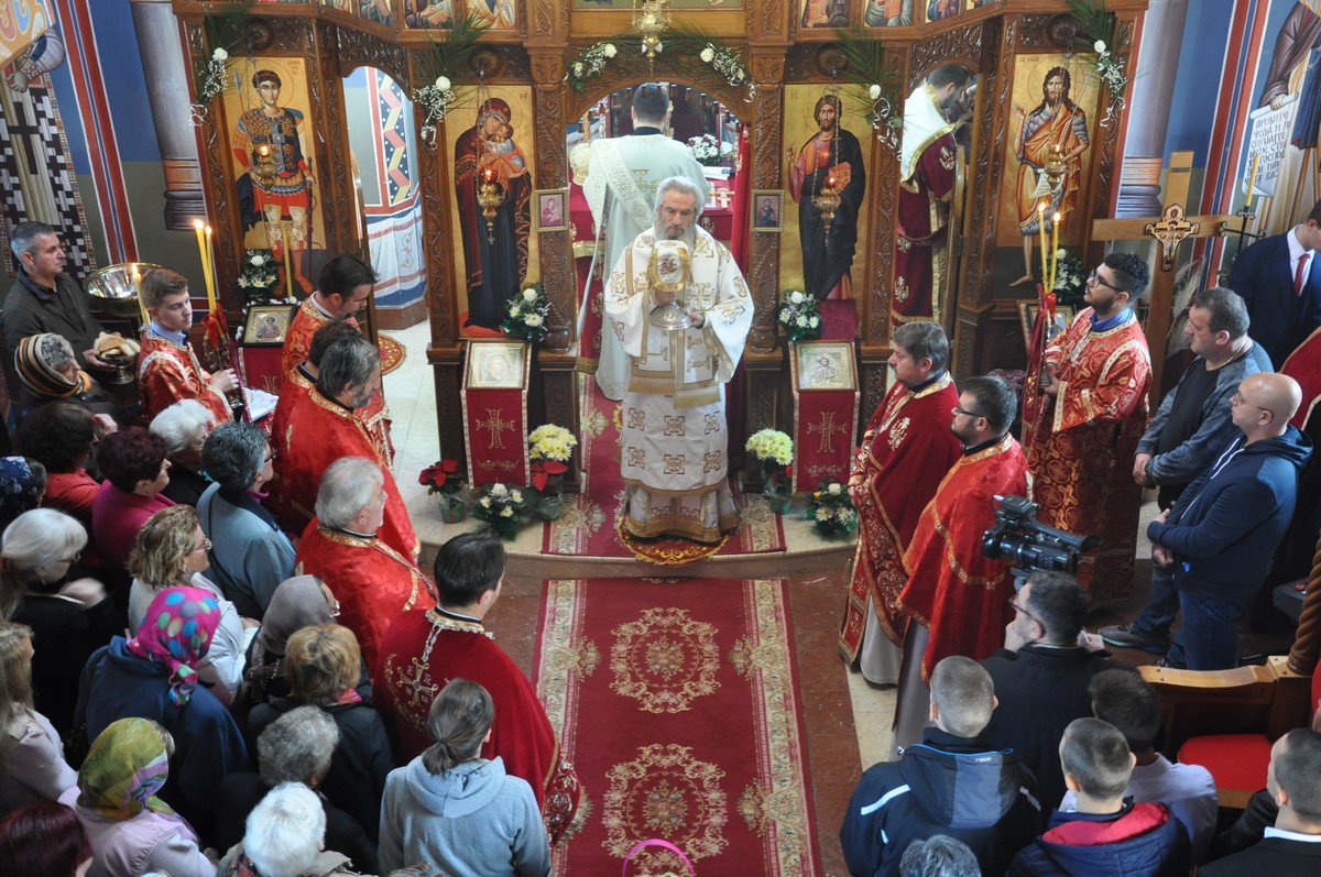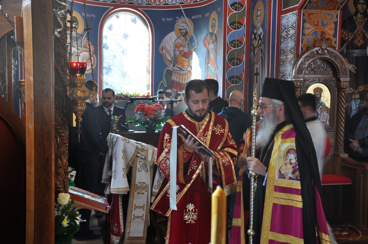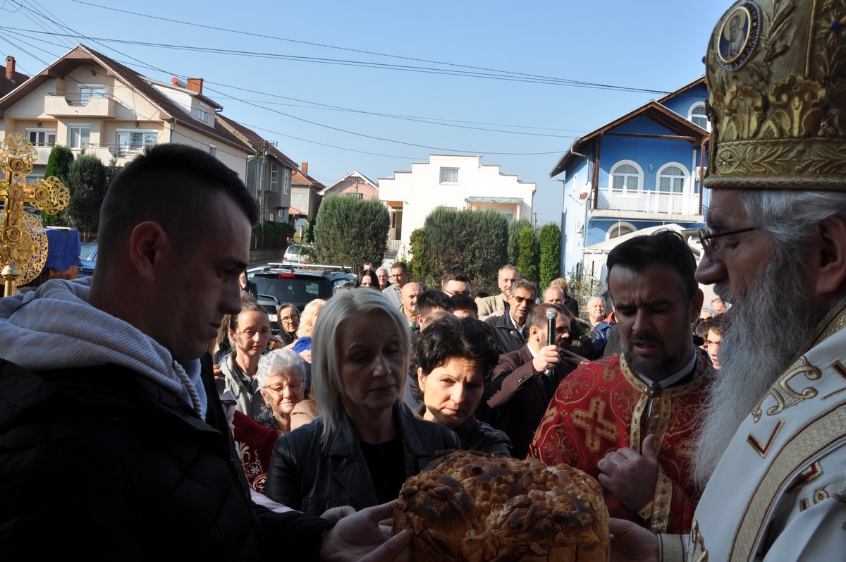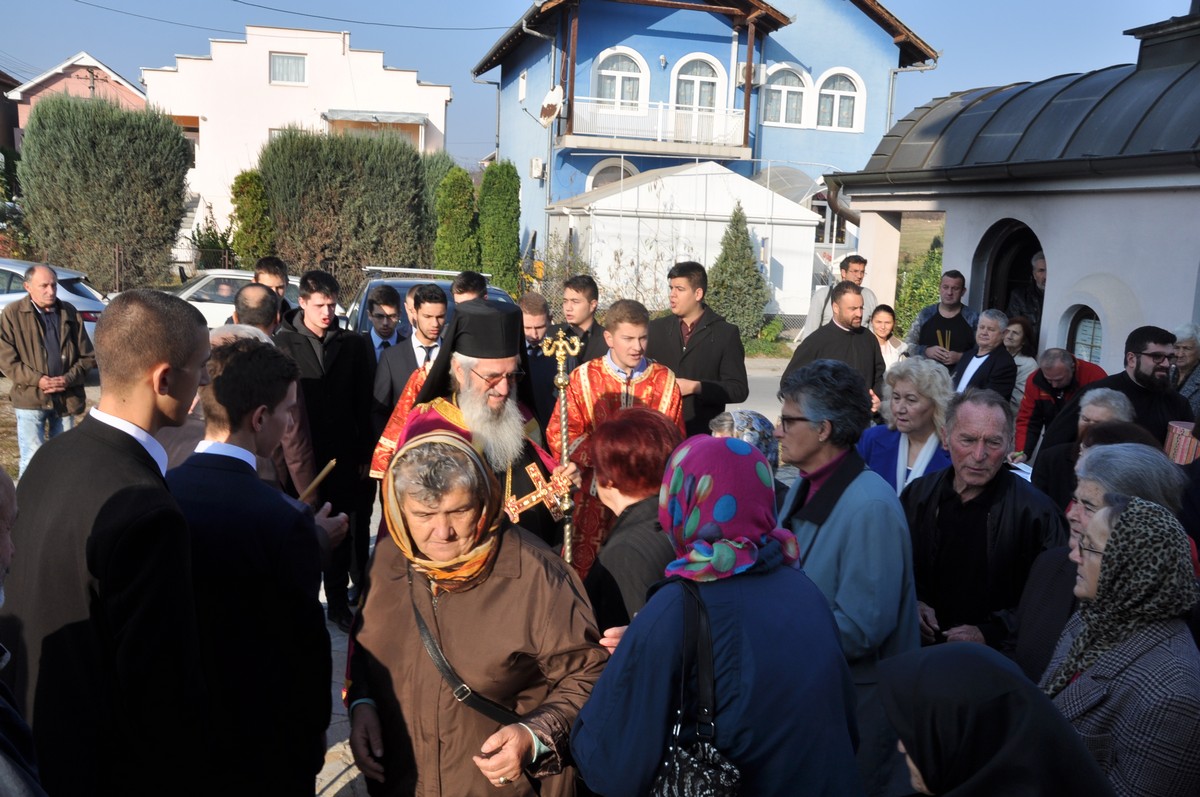 Након прочитаног зачала из Јеванђеља, Епископ је дао благослов протонамеснику Александру Сенићу да се беседом обрати сабраним верницима. Отац Александар истакао је да је исконско опредељење светог Димитрија био Христос и да је захваљујући вери у Христа он засијао попут злата. “Хришћани ходе земљом, а живе небом. Зато је небо мера хришћанског живота. Свети Димитрије, укрепљен Духом Светим, одолео је искушењима времена и као такав постао сличан дрвету из пслама које је засађено крај извора Духа, само што за разлику од дрвета, које свој род доноси у одређено време, свети Димитрије је у свако време имао и има добро цветање и рађање плодова. Један од тих плодова је Божијом вољом допао и у наш град и на ово место где је никао овај предивни храм. На нама је да се у овом времену угледамо на наше претке и да, сведочећи Христа, сачувамо своју веру и своју Цркву”, закључио је свештеник Александар Сенић пожелевши свима срећан празник.