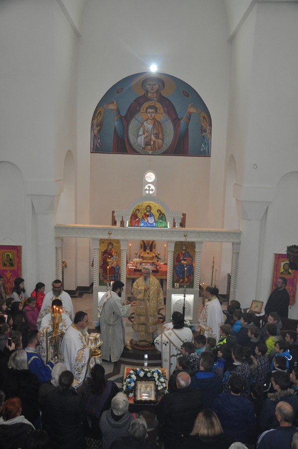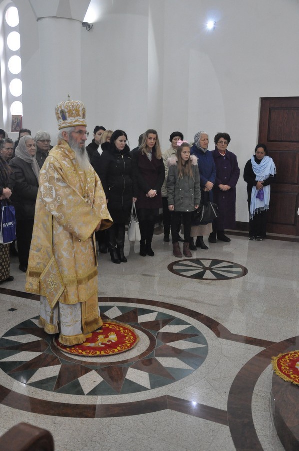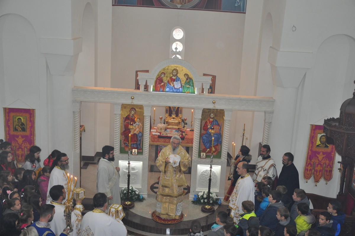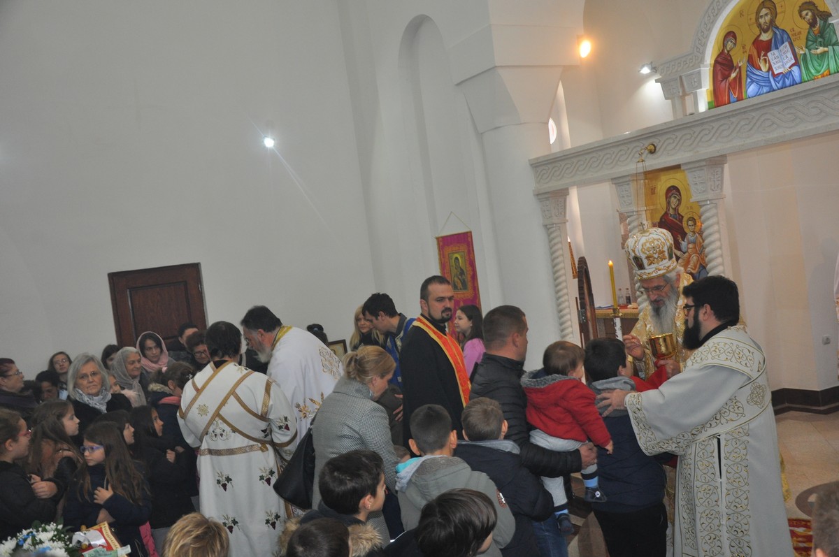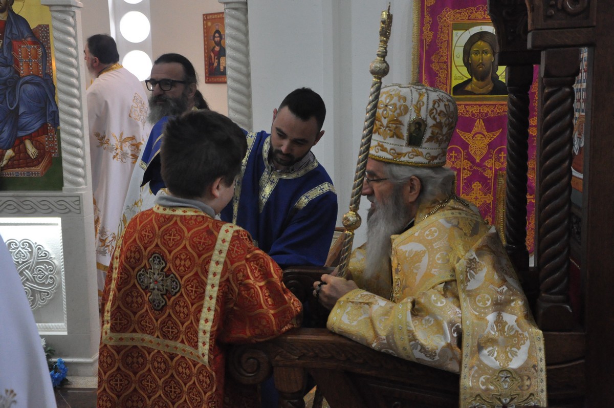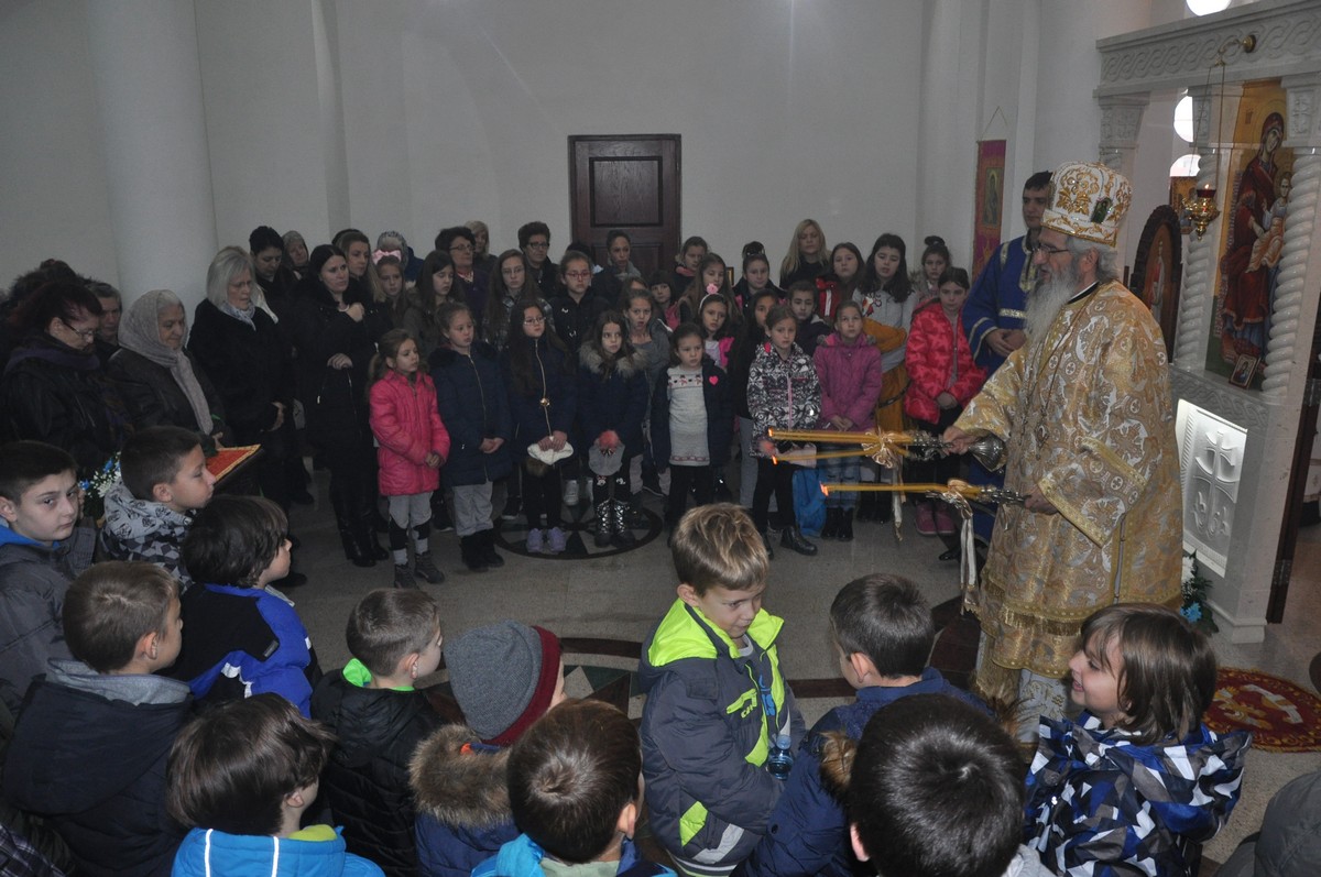 Владика Јован је беседећи истакао следеће: „Питање које морамо себи поставити тиче се тога јесмо ли ми хришћани само на речима, или и на делима? Када отац и мајка у кући светле хришћанским врлинама, то ће бити пренето и на њихову децу. Када бисмо ми старији били бољи као родитељи, онда би и наша деца била боља. У крштењу свако задобија светлост Христову која просвећује и освећује сваког човека који долази на овај свет. Ако човек није заокриљен Богом, Црквом и хришћанским врлинама, пламен наше вере и светлост наше светиљке ће бити угашени. На овај свет смо дошли жељом наших родитеља у време када је Господ то хтео. Зато је за нас сада време да преиспитујемо себе и да се животом припремимо за сусрет са Господом. Зато нам је сада дато да живимо у светлости, те због тога на почетку ове Литургије је речено да се светли ваша светлост и да људи виде добра дела ваша, као подсећање и подстицај сваком хришћанину да живи светим животом“, била је поука вернима.