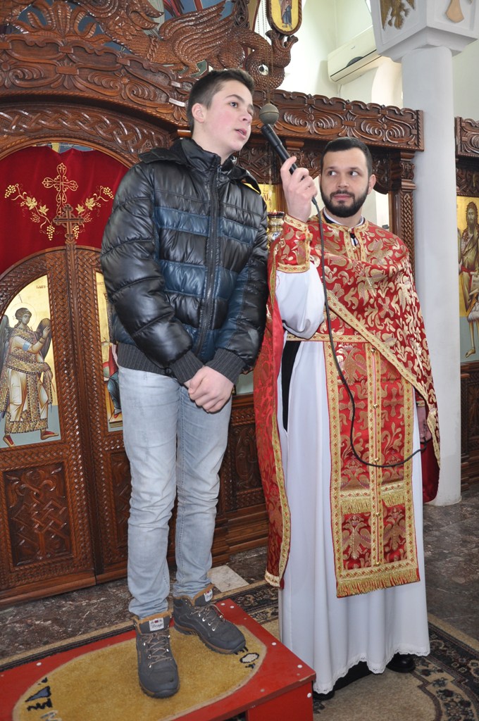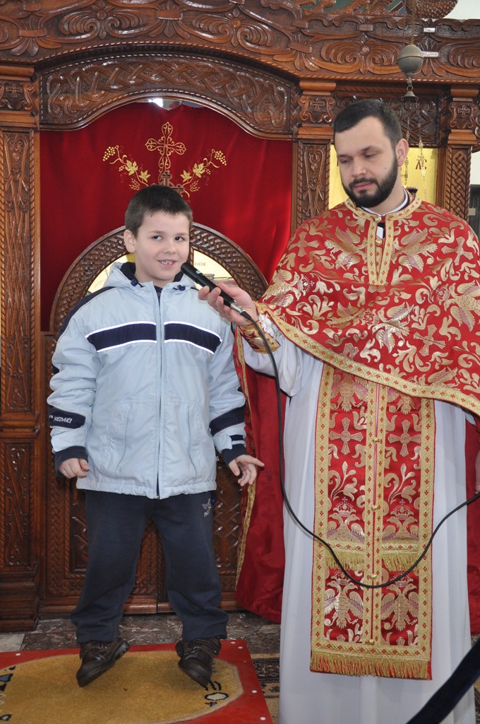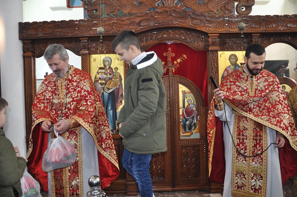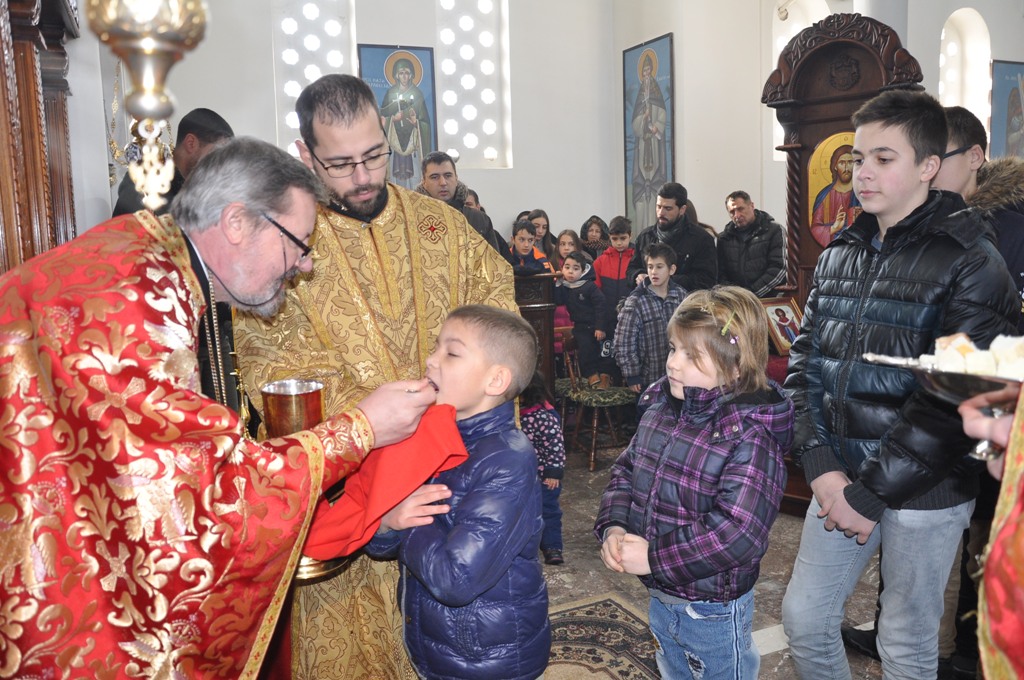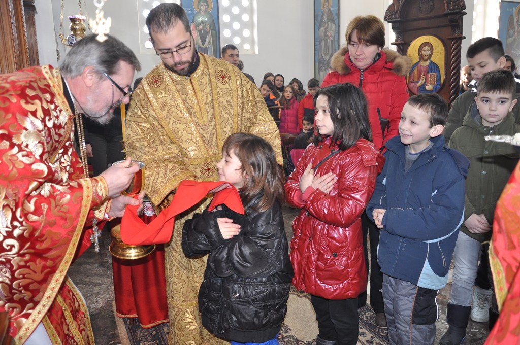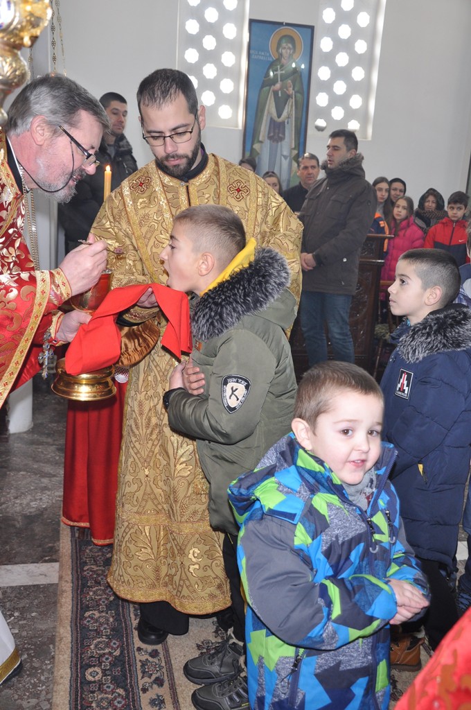 На Литургији је одговарао тек основани хор нашег храма уз помоћ деце из ОШ “Драгиша Луковић - Шпанац” са својом вероучитељицом. На позив ђакона “са страхом Божијим и вером приступите” приступио је већи број деце да прими божанске, пречисте, бесмртне, животворне, страшне Христове тајне.