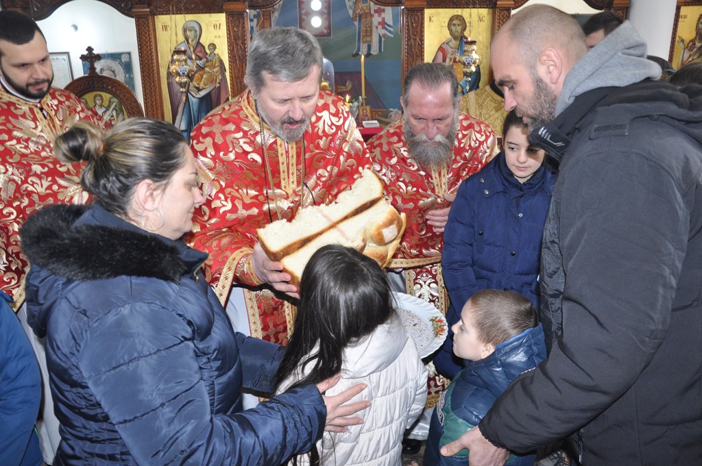 Након заамвоне молитве освећен је и преломљен славски колач и део колача предат новој колачарки Здравки Кушић, а након тога је уследила Светосаваска рецитација деце од 2 до 14 година која је имала и неколико веома лепих песама отпеваних у част Светоме Сави.